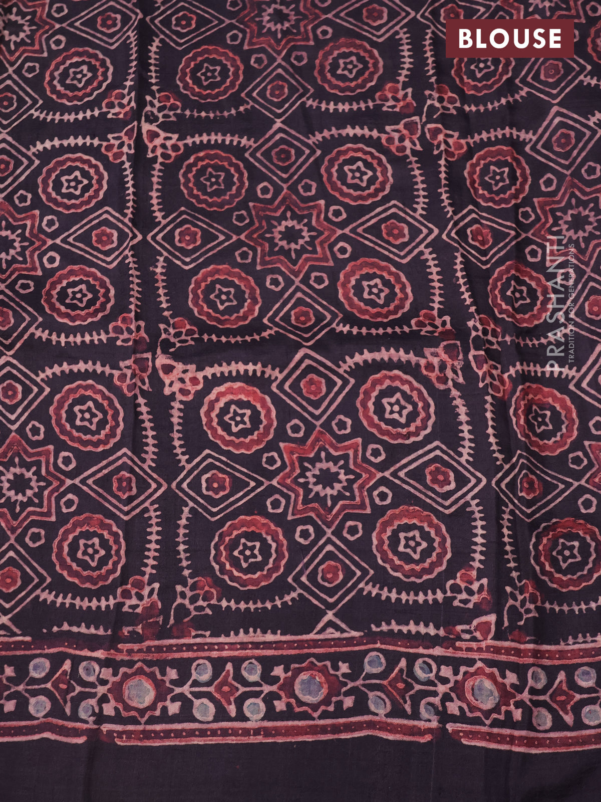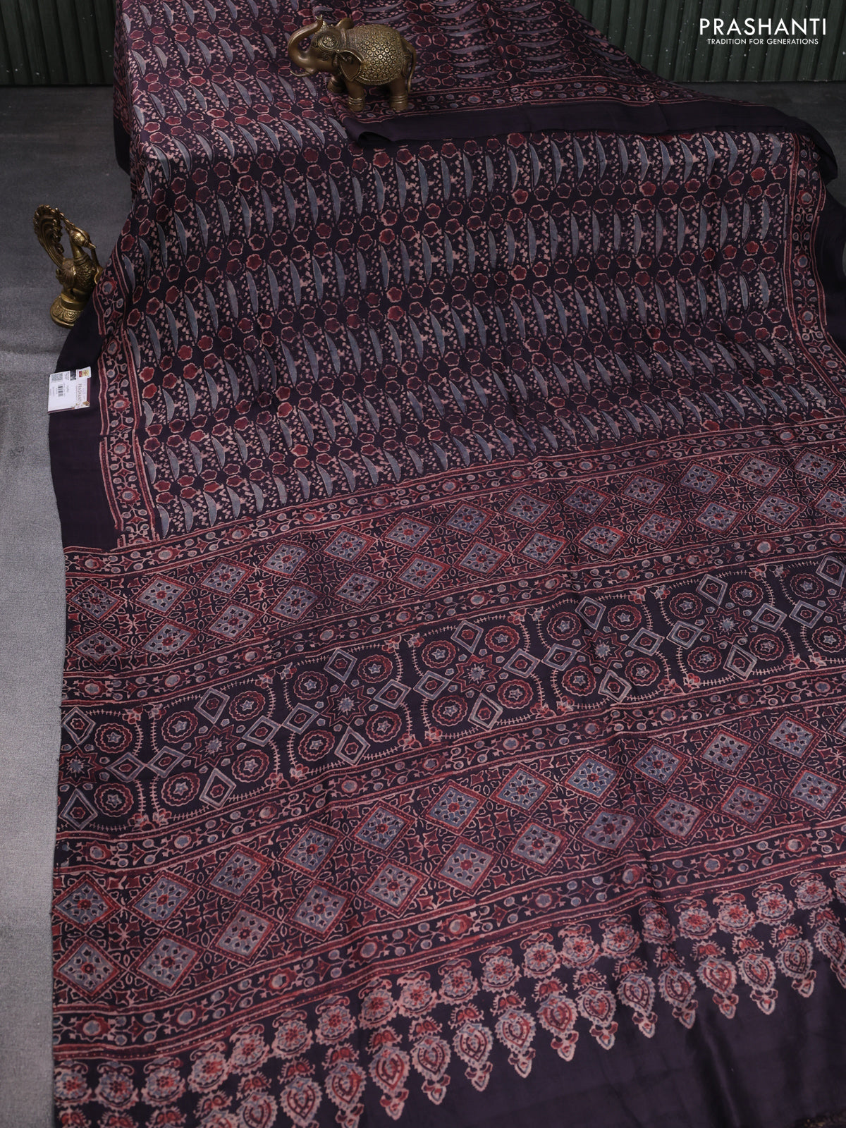 Printed silk saree jamun shade with allover ajrakh prints and simple border
