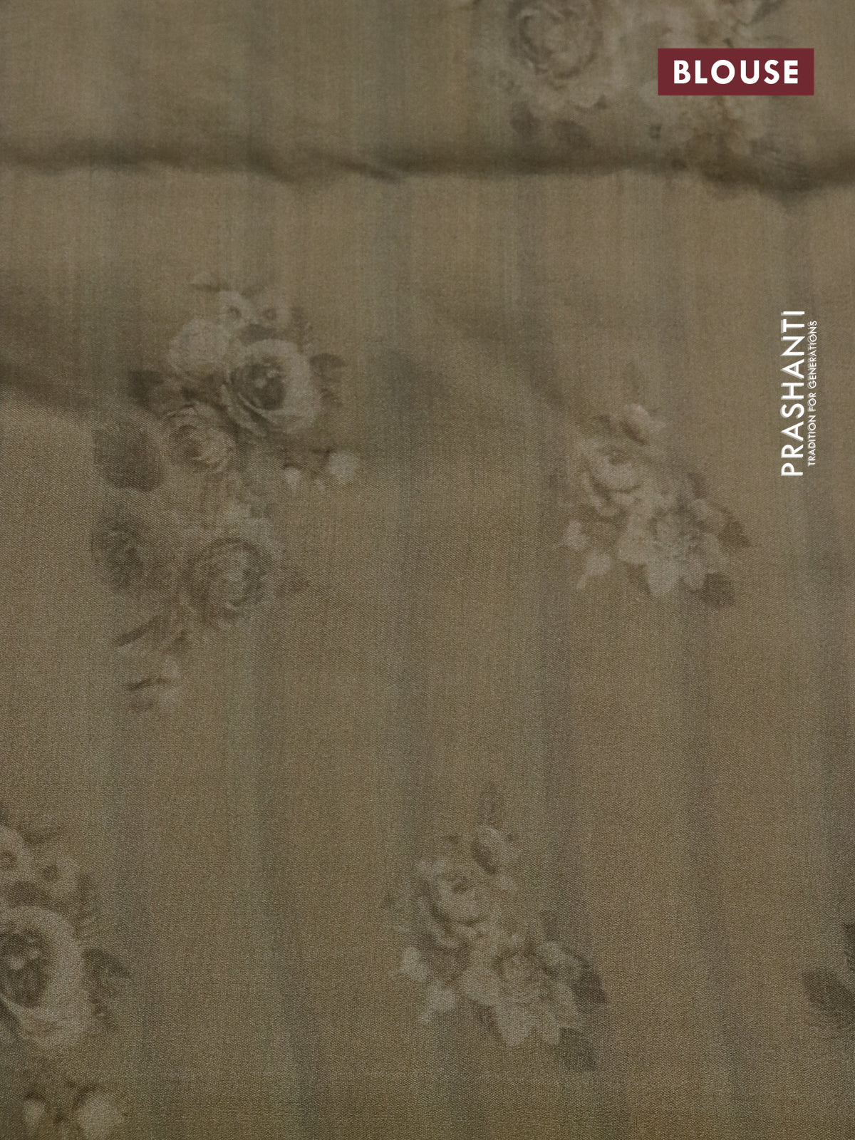 Pure banarasi organza silk saree elaichi green with floral digital prints and small zari woven border