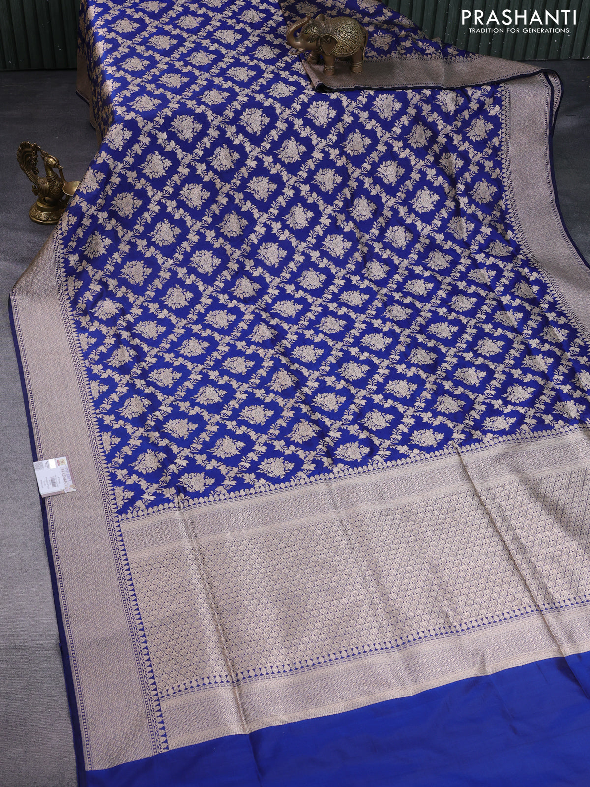 Pure banarasi uppada silk saree blue with allover zari woven brocade weaves and zari woven border