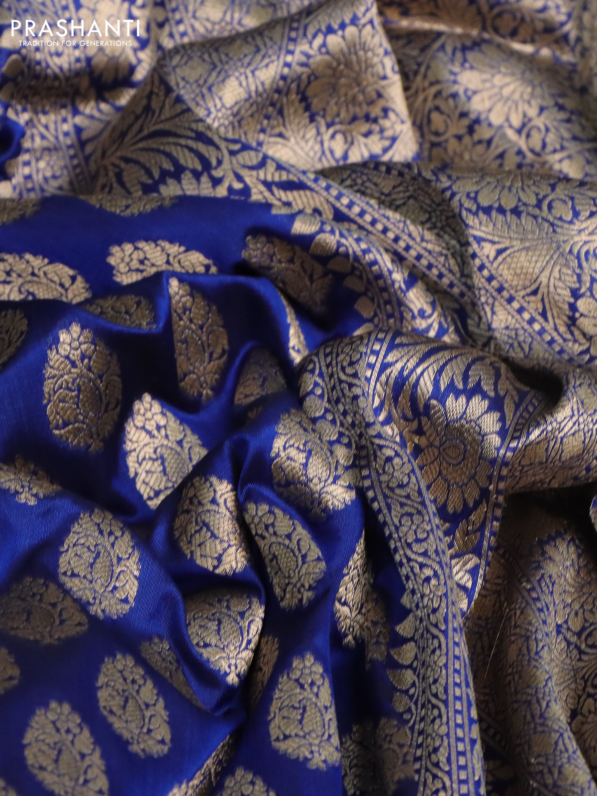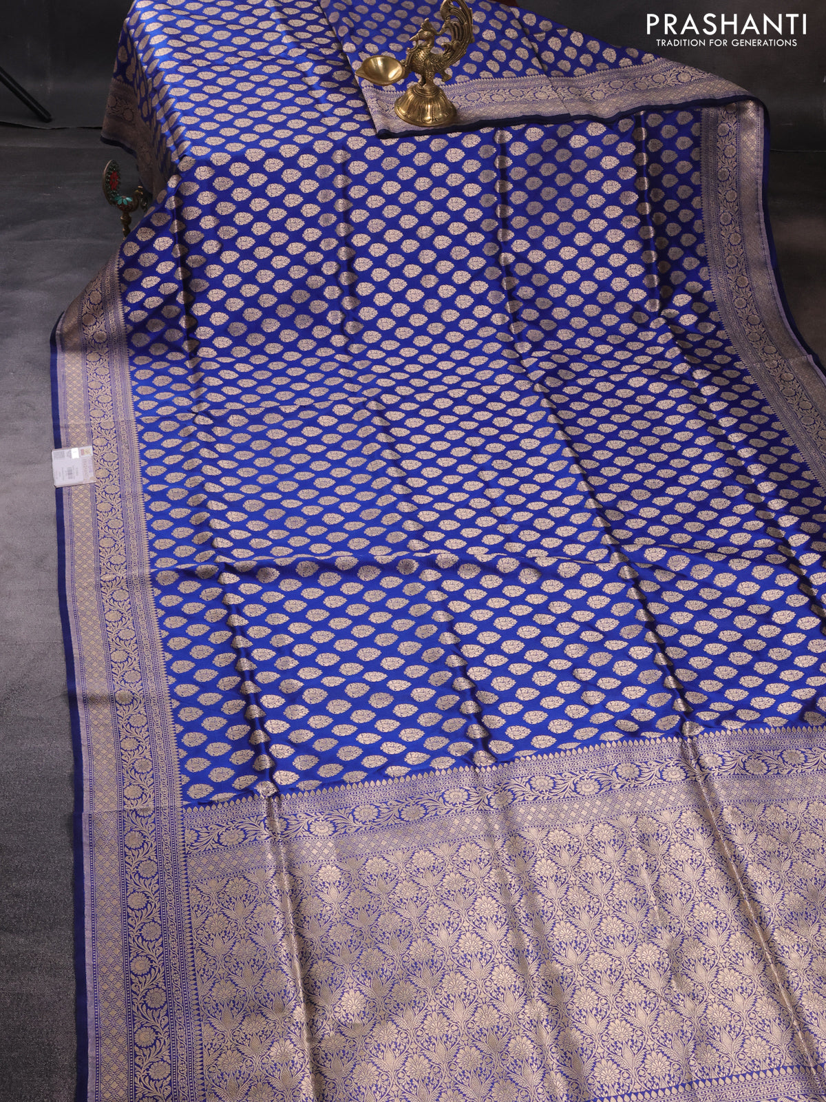 Pure banarasi uppada silk saree blue with allover zari woven butta weaves and zari woven border