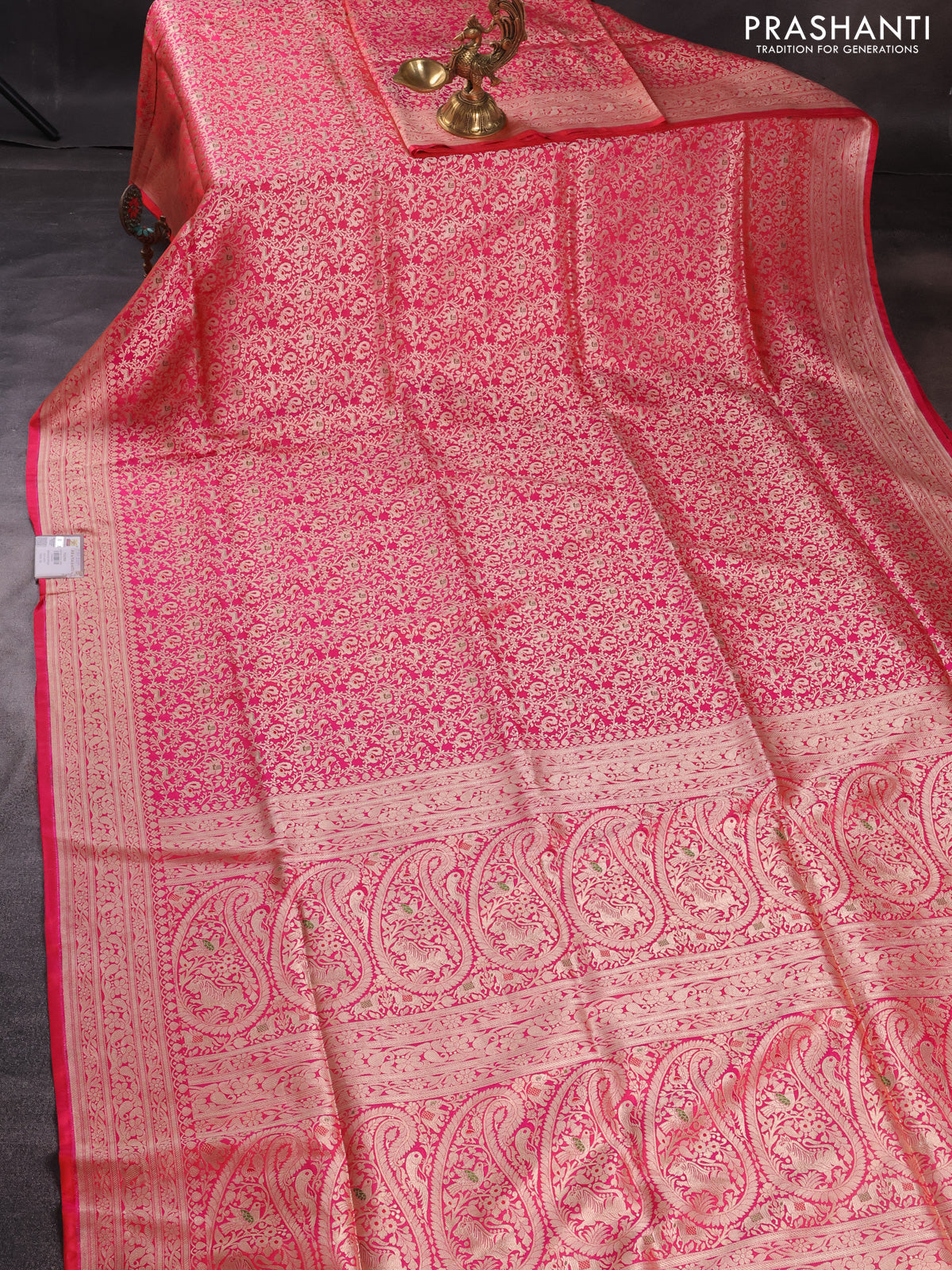 Pure banarasi uppada silk saree dual shade of pink with allover zari woven brocade weaves and zari woven border