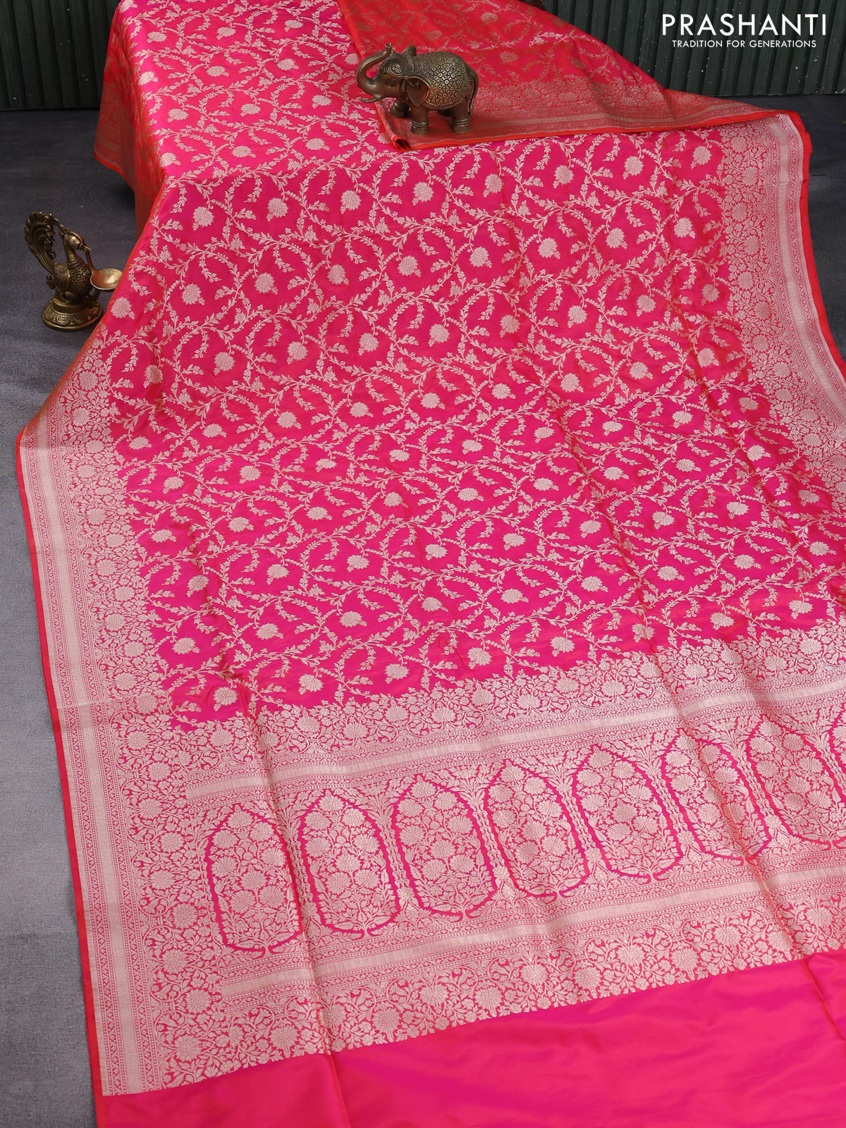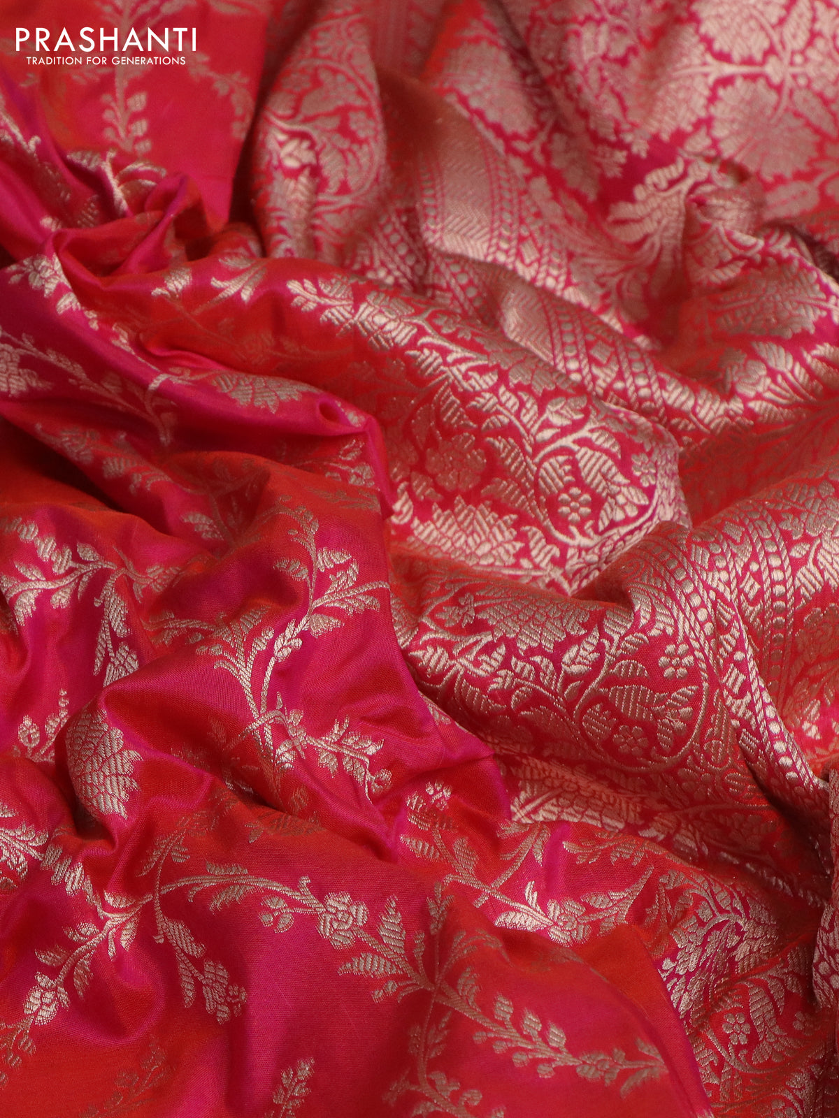 Pure banarasi uppada silk saree dual shade of pinkish orange with allover zari woven brocade weaves and zari woven border