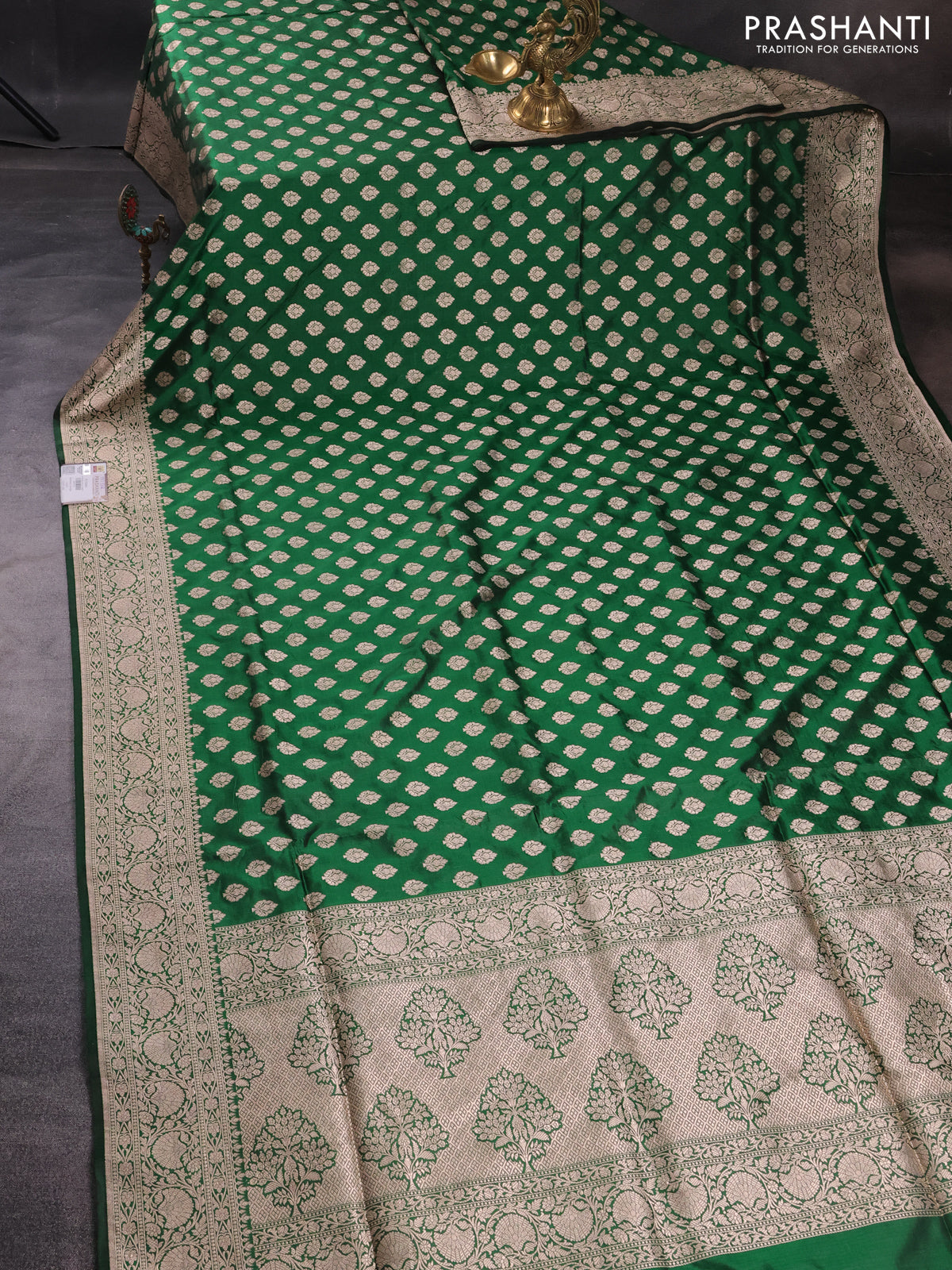 Pure banarasi uppada silk saree green with allover zari woven butta weaves and zari woven border
