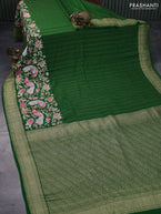 Pure crepe saree green with allover zari weaves & embroidery work and zari woven border