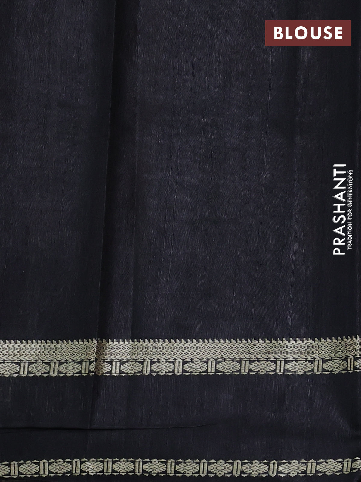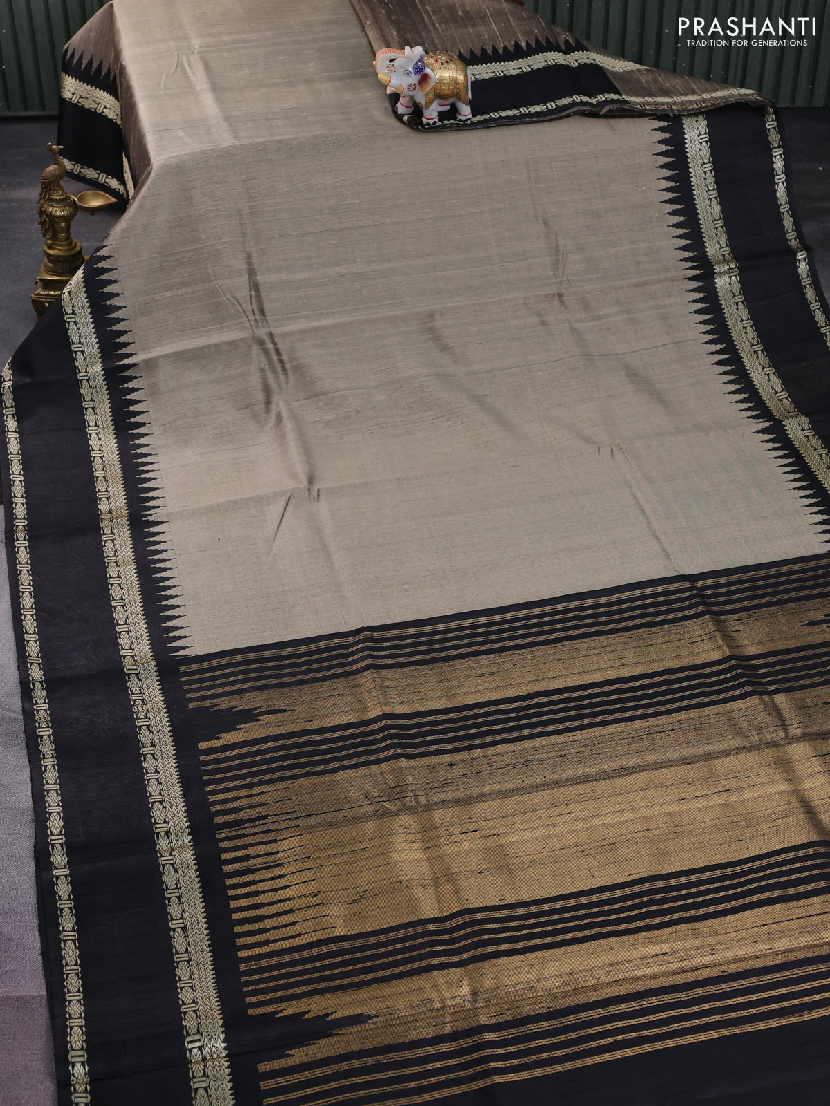 Pure dupion silk saree beige and black with plain body and temple design rettapet thread woven border