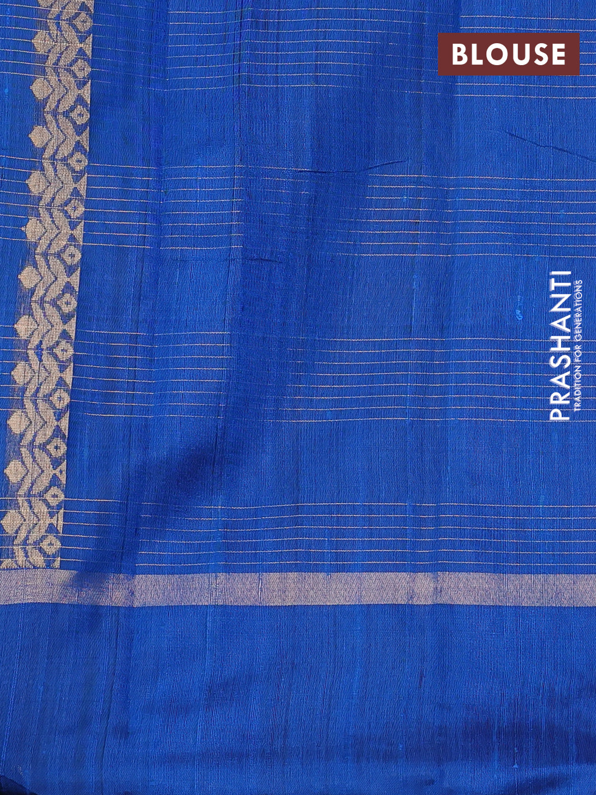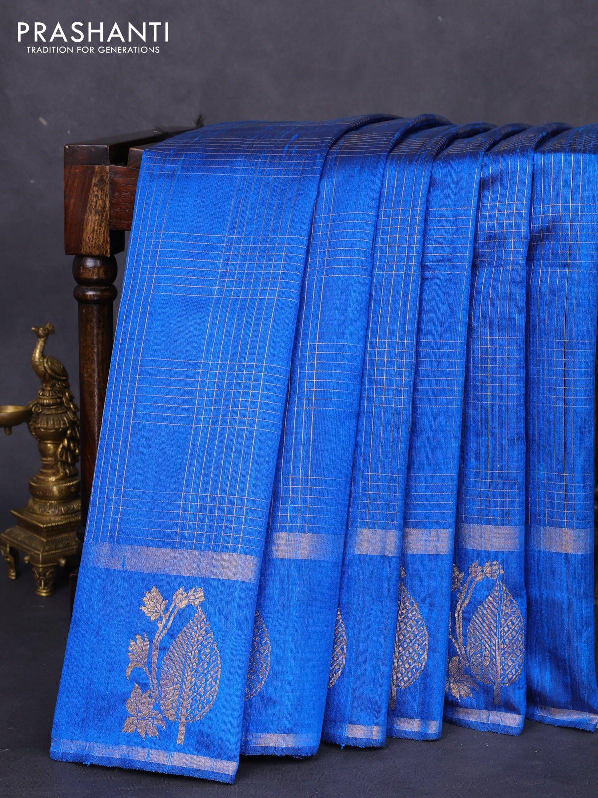 Pure dupion silk saree cs blue with allover zari checked pattern and zari woven butta border