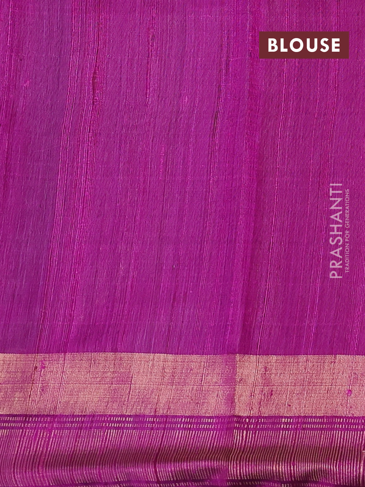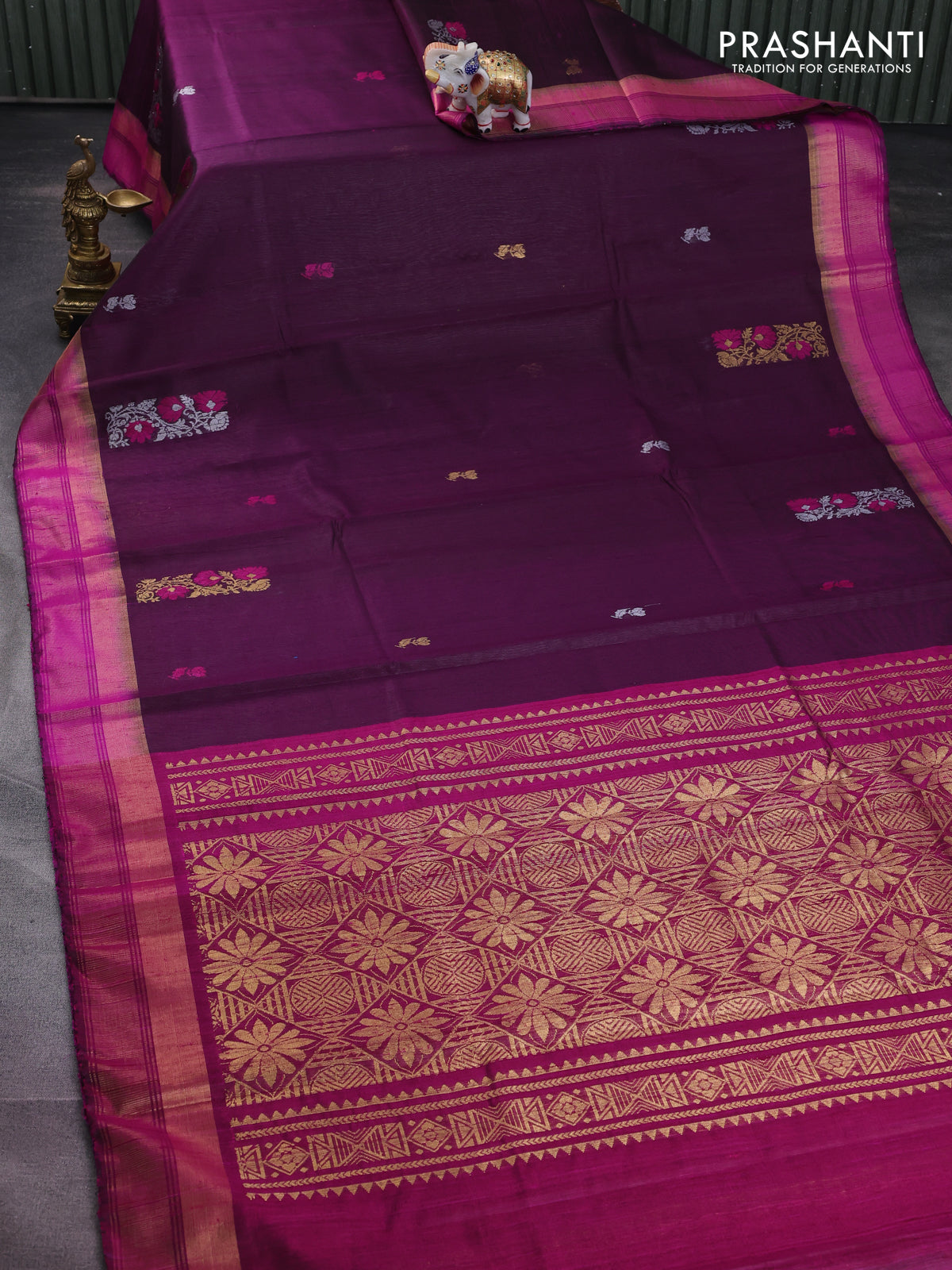 Pure dupion silk saree deep jamun and magenta pink with thread & silver zari woven buttas and zari woven border