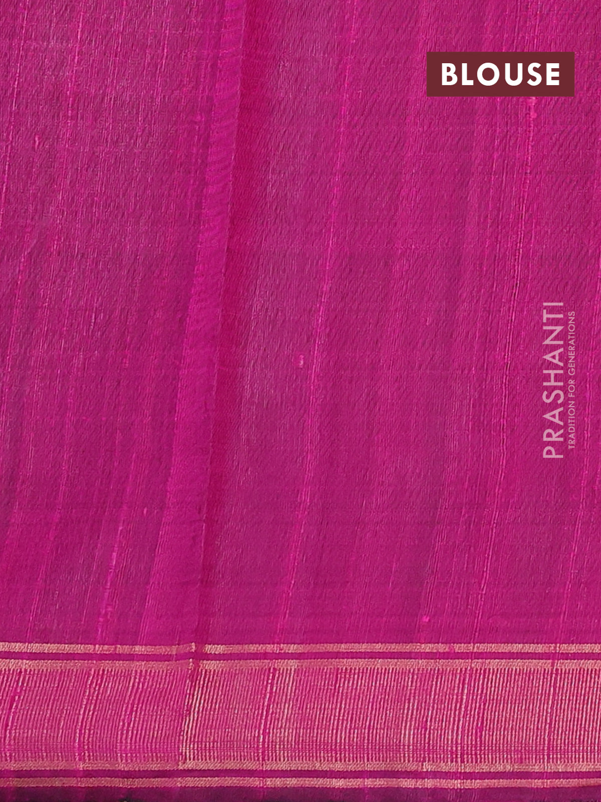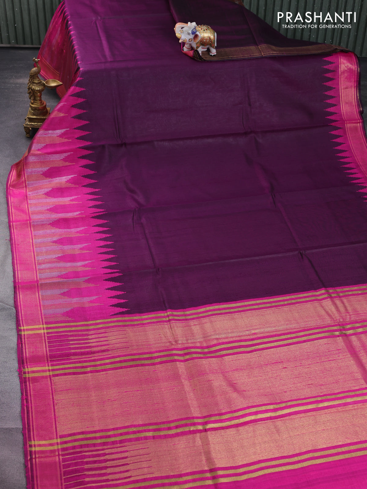 Pure dupion silk saree deep purple and magenta pink with plain body and temple design zari woven border