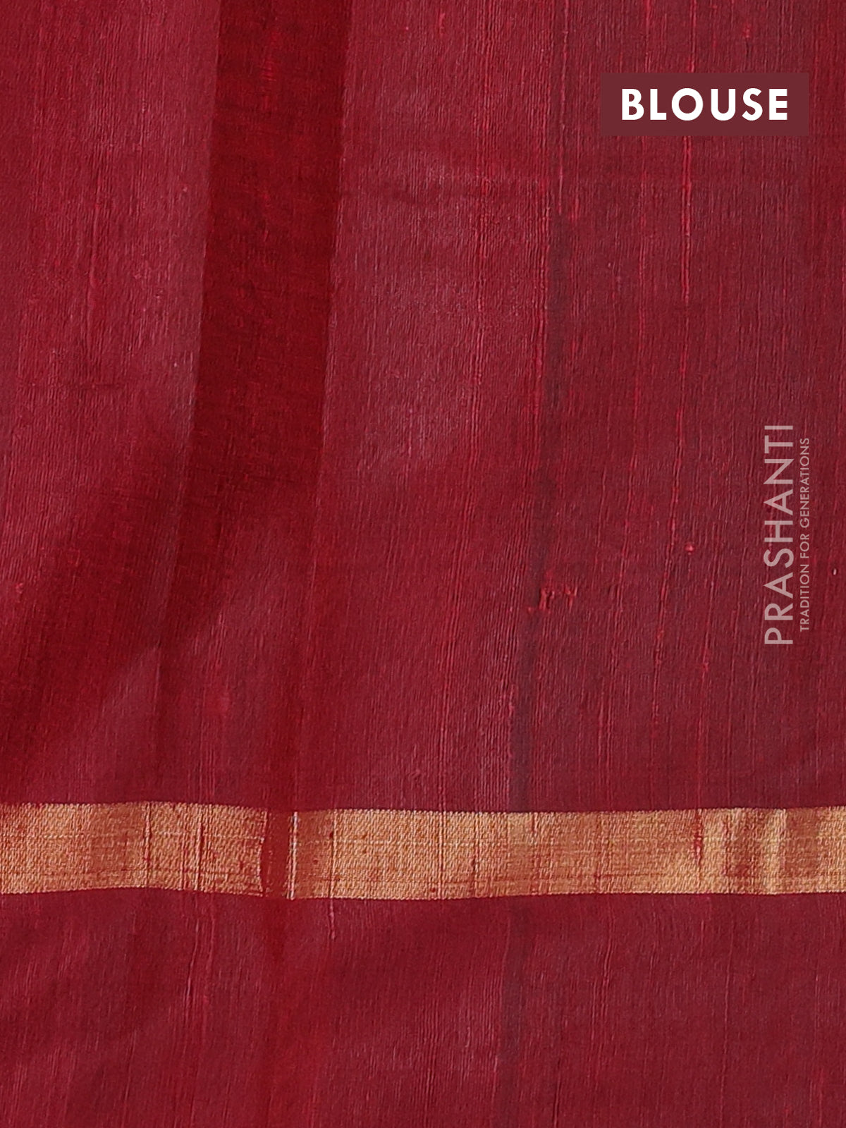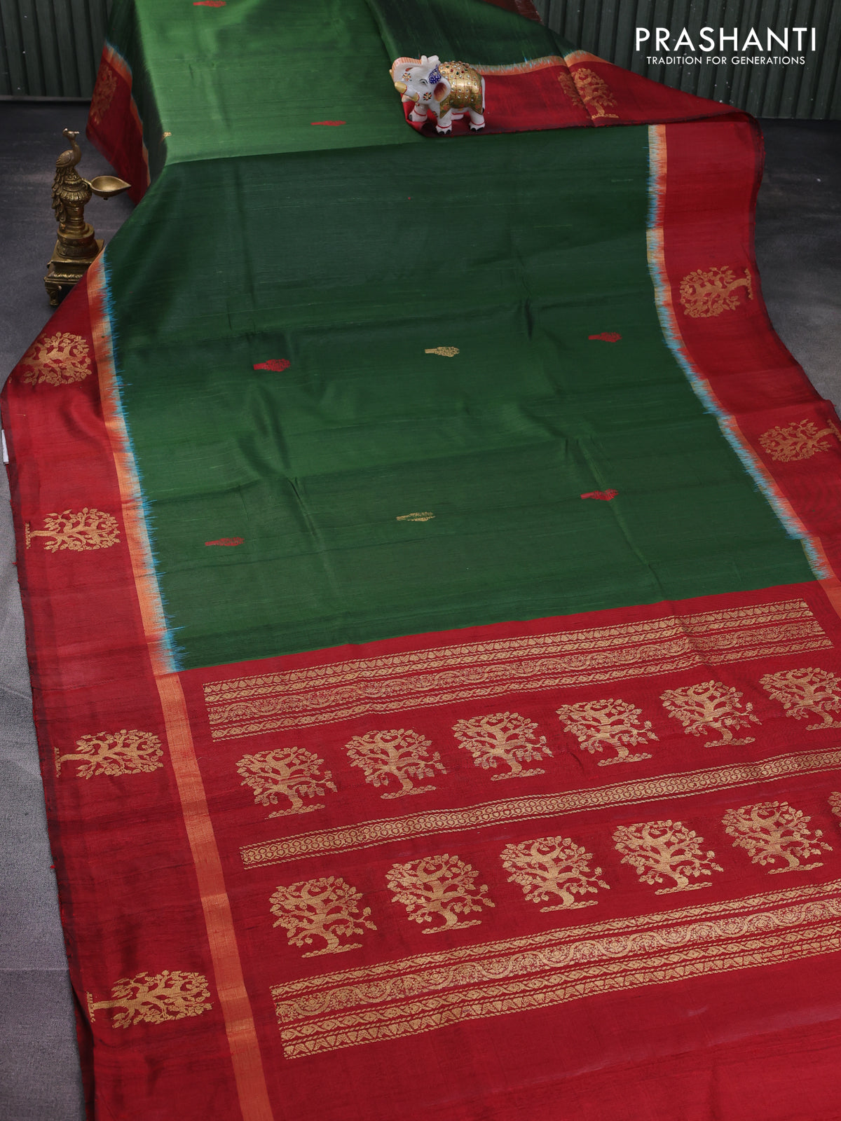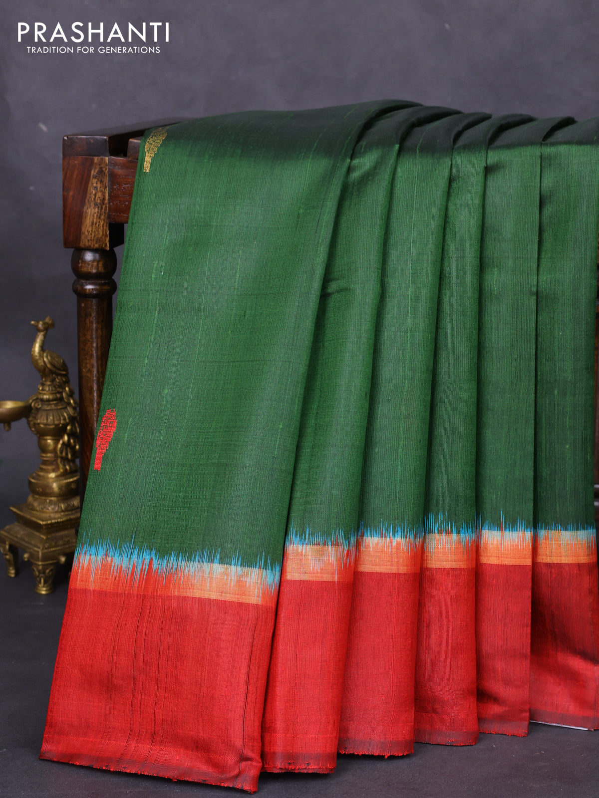 Pure dupion silk saree green and maroon with thread woven buttas and zari woven butta border