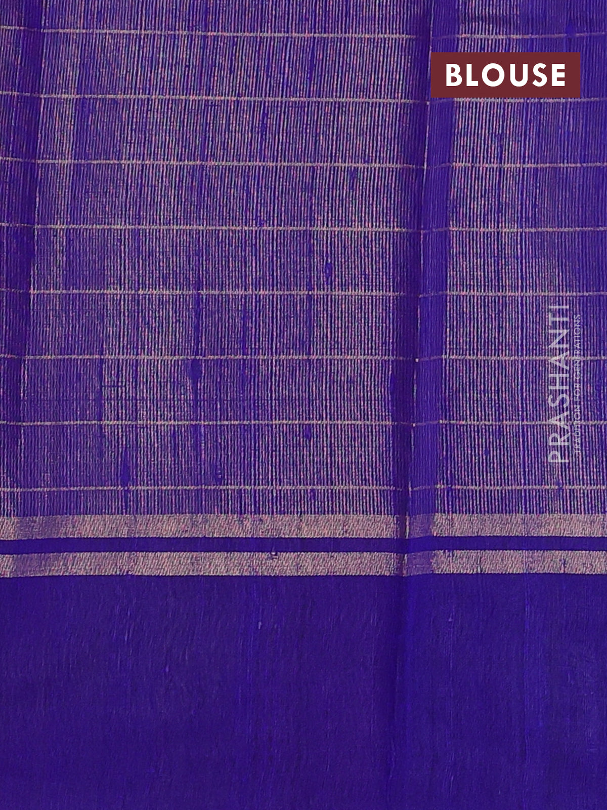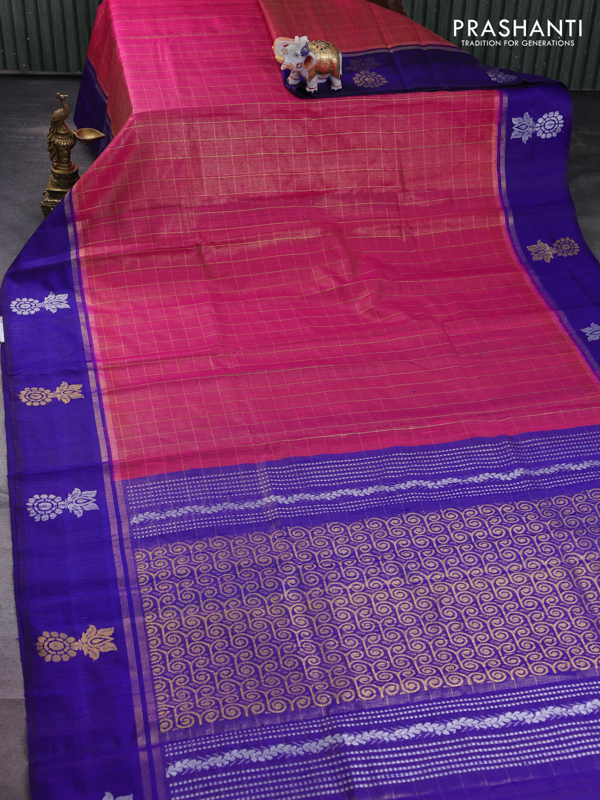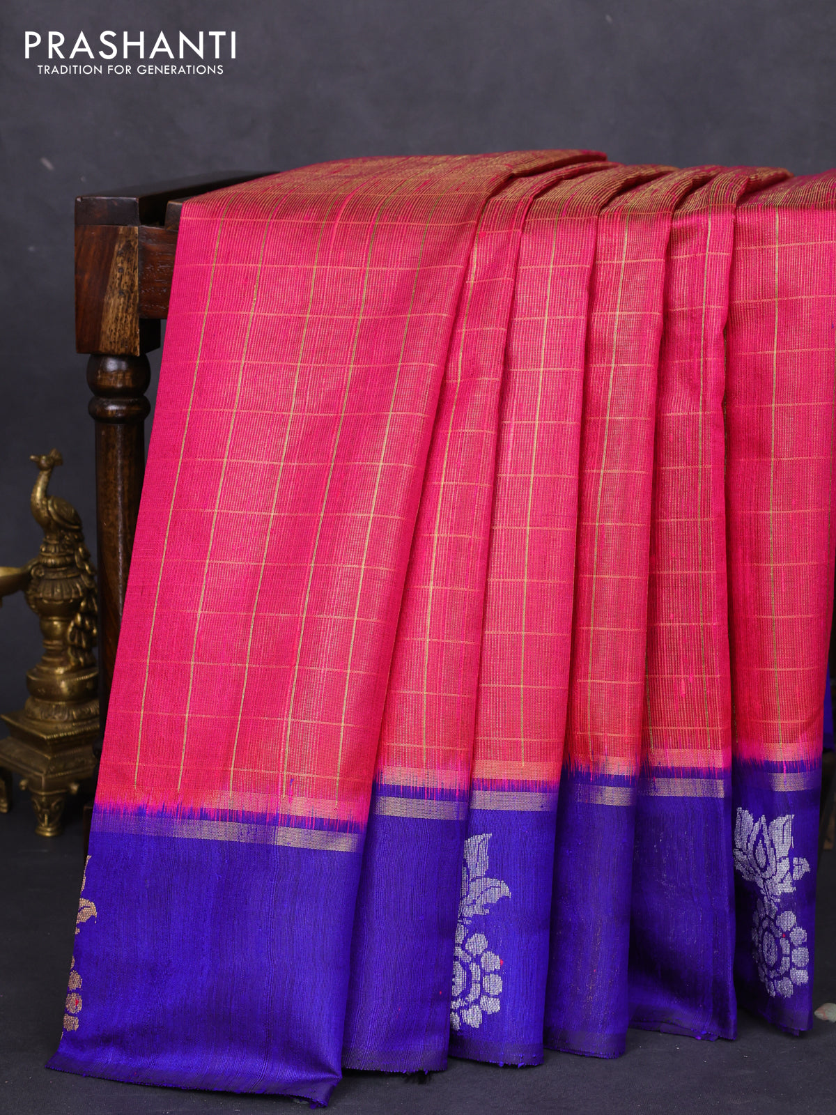 Pure dupion silk saree pink and blue with allover zari checked pattern and zari woven butta border