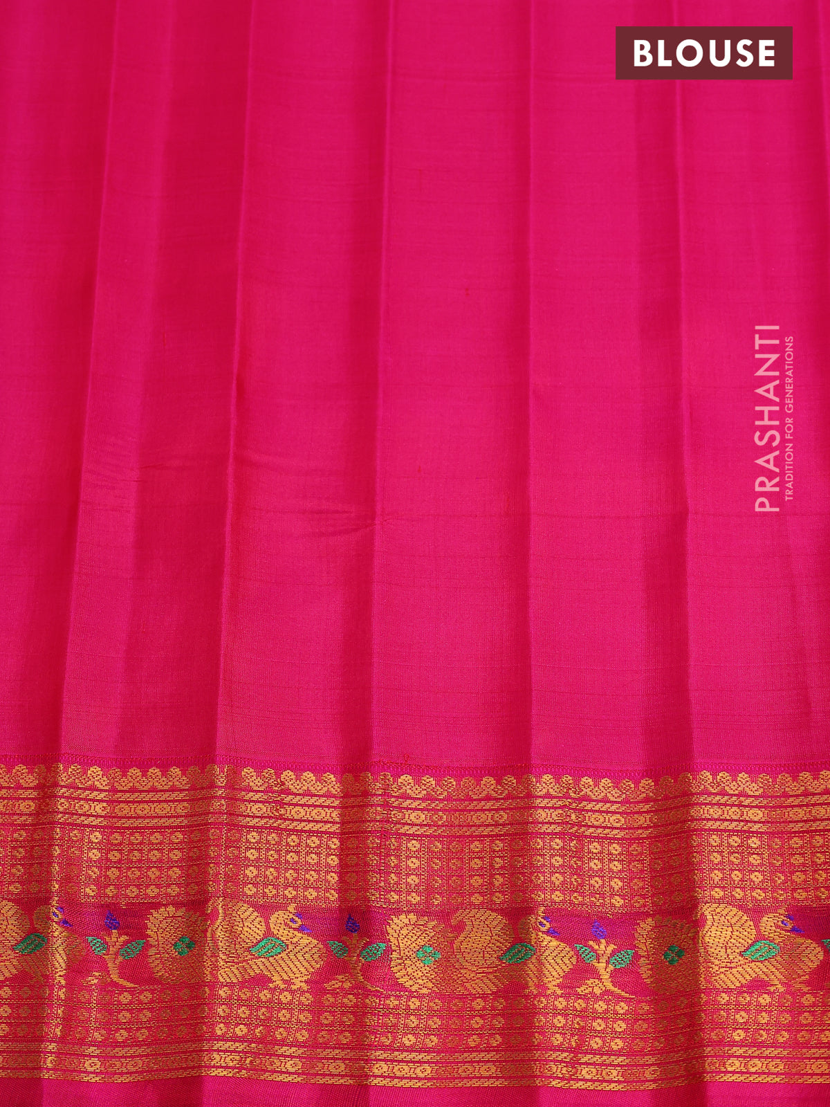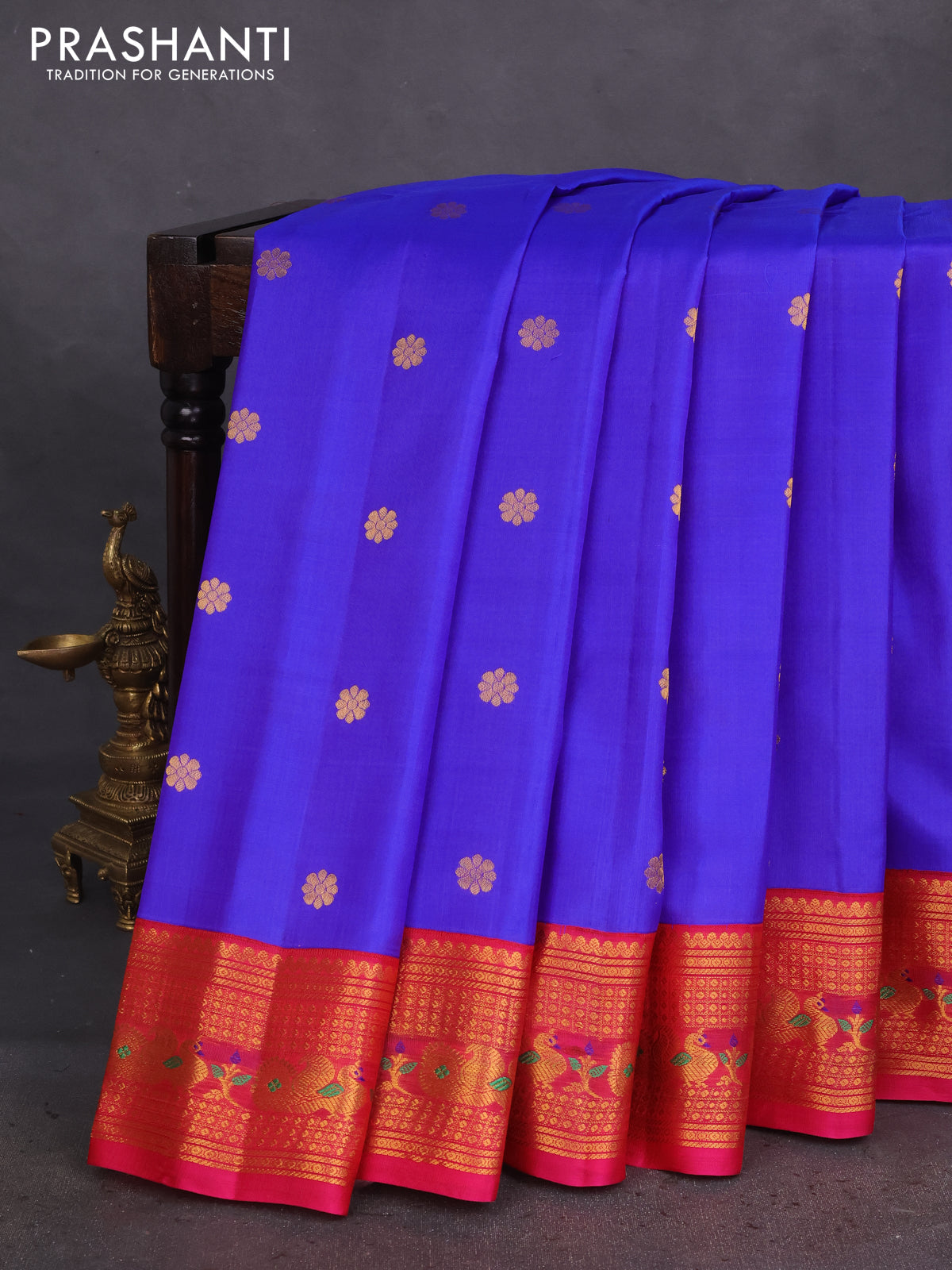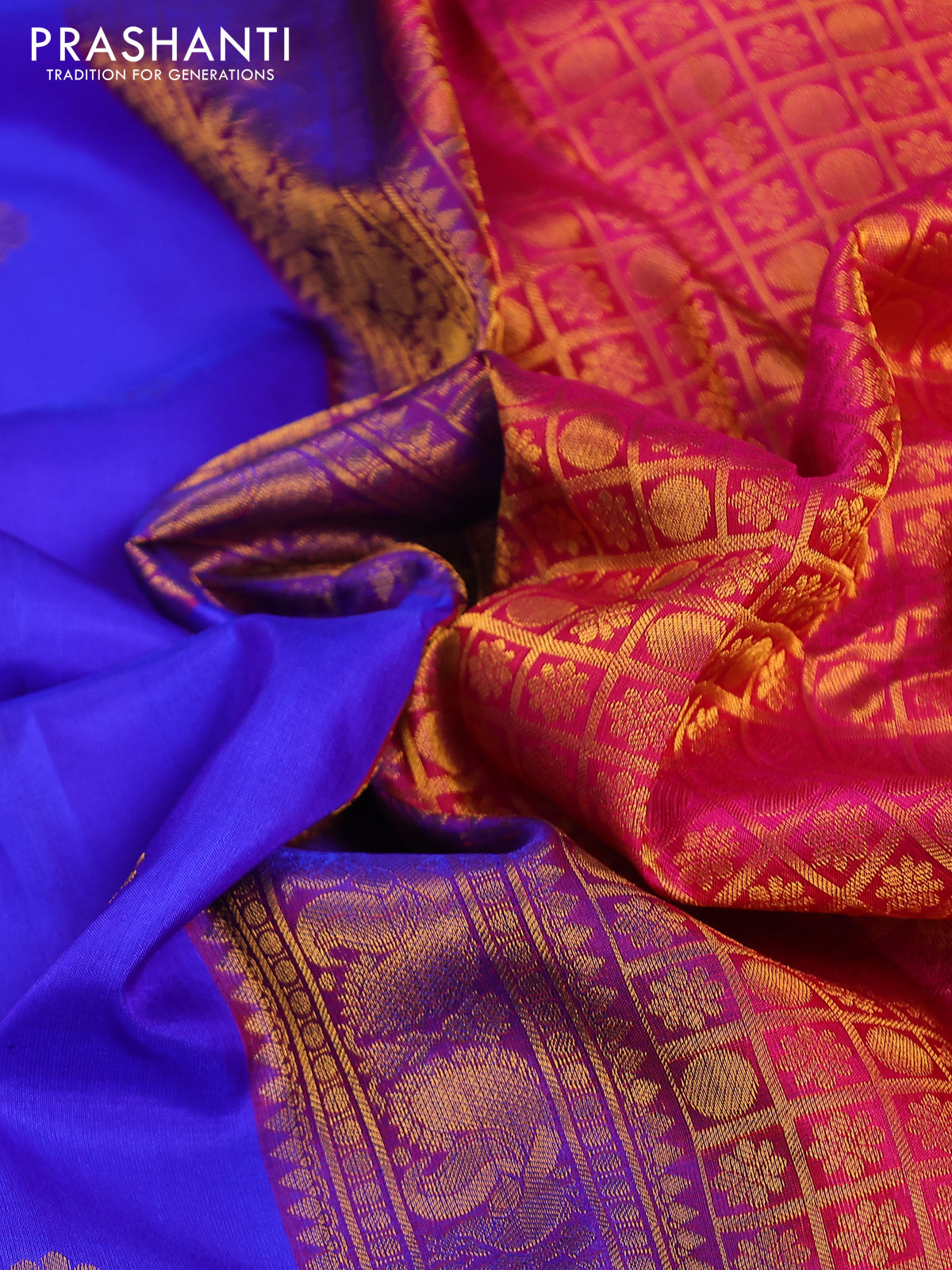 Pure gadwal silk saree blue and pink with zari woven buttas and zari woven korvai border