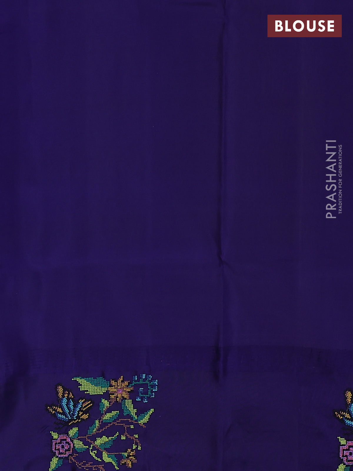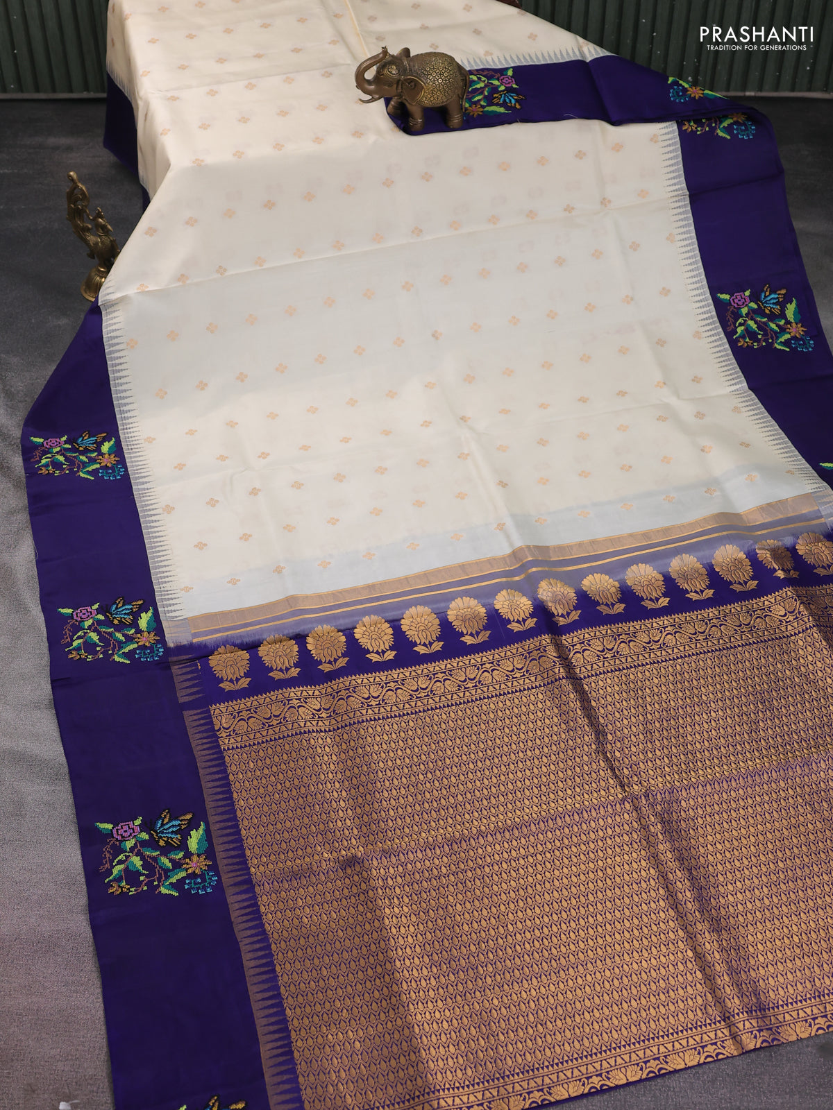 Pure gadwal silk saree cream and blue with zari woven buttas and temple design embroidery border