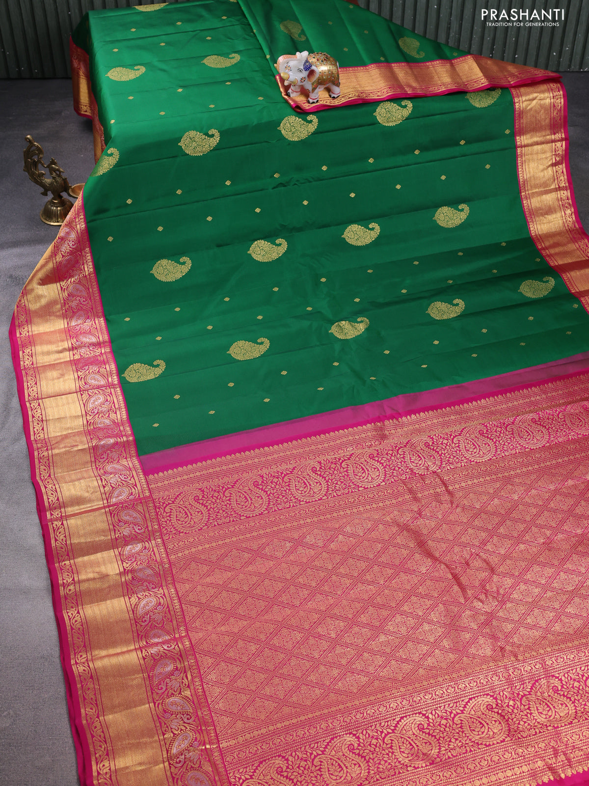 Pure gadwal silk saree green and pink with zari woven buttas and long rich zari woven korvai border