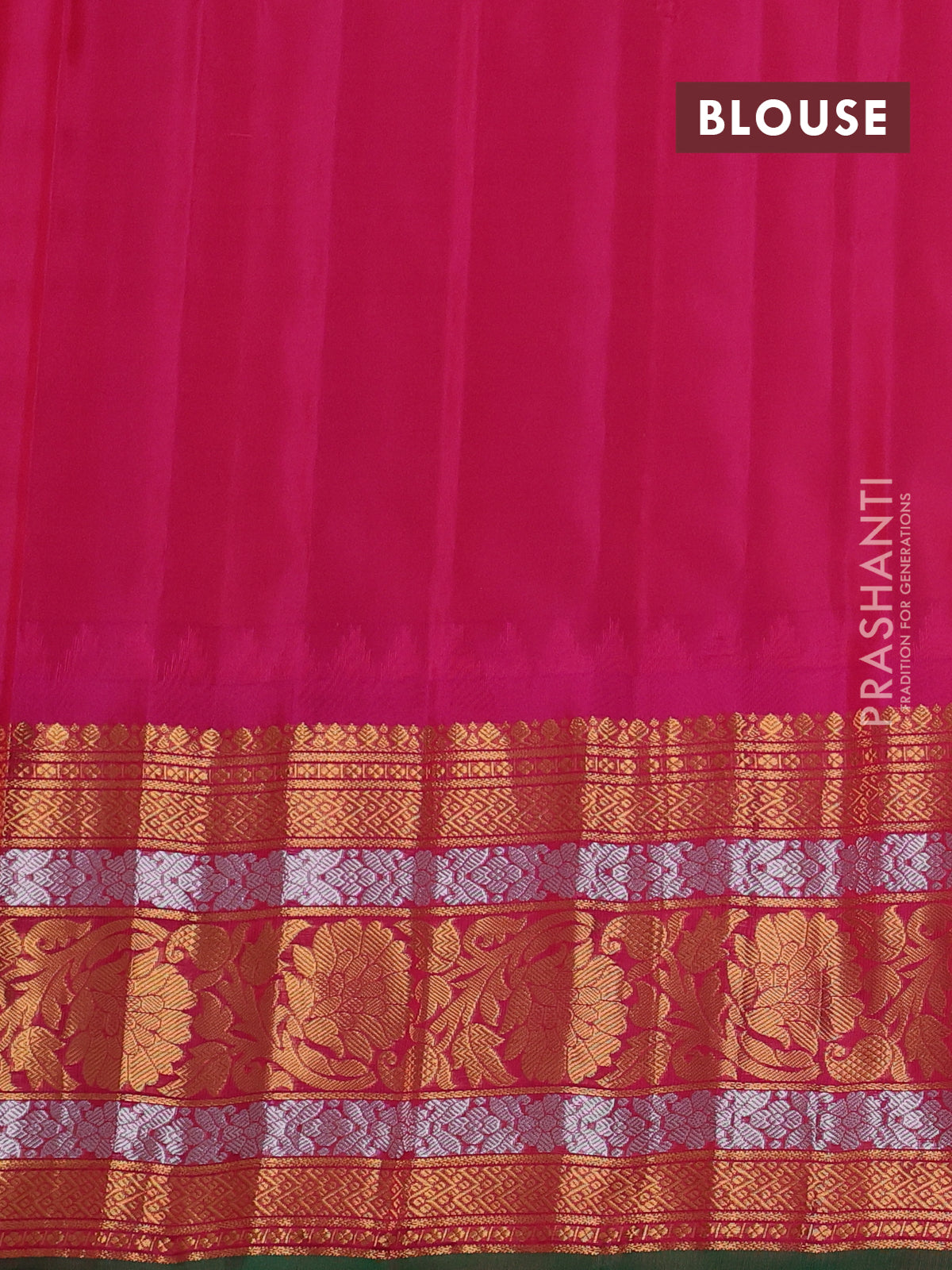 Material : Pure Gadwal SILK MARK CERTIFIED Blouse : Attached Length of saree : 6.2 mts (5.5 mts saree &... Read more