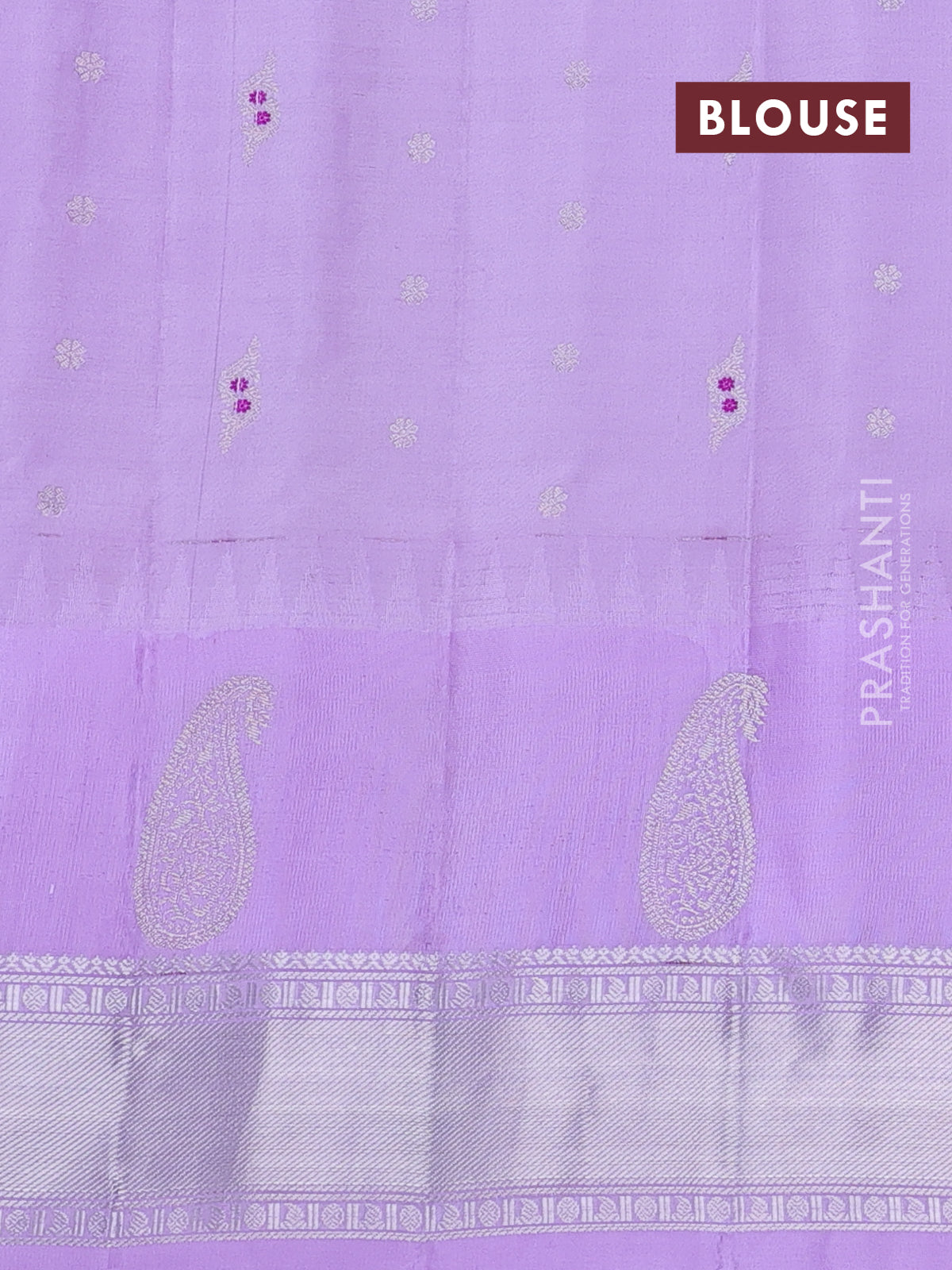 Pure gadwal silk saree navy bluw and lavender with silver zari woven buttas and long temple design silver zari woven border