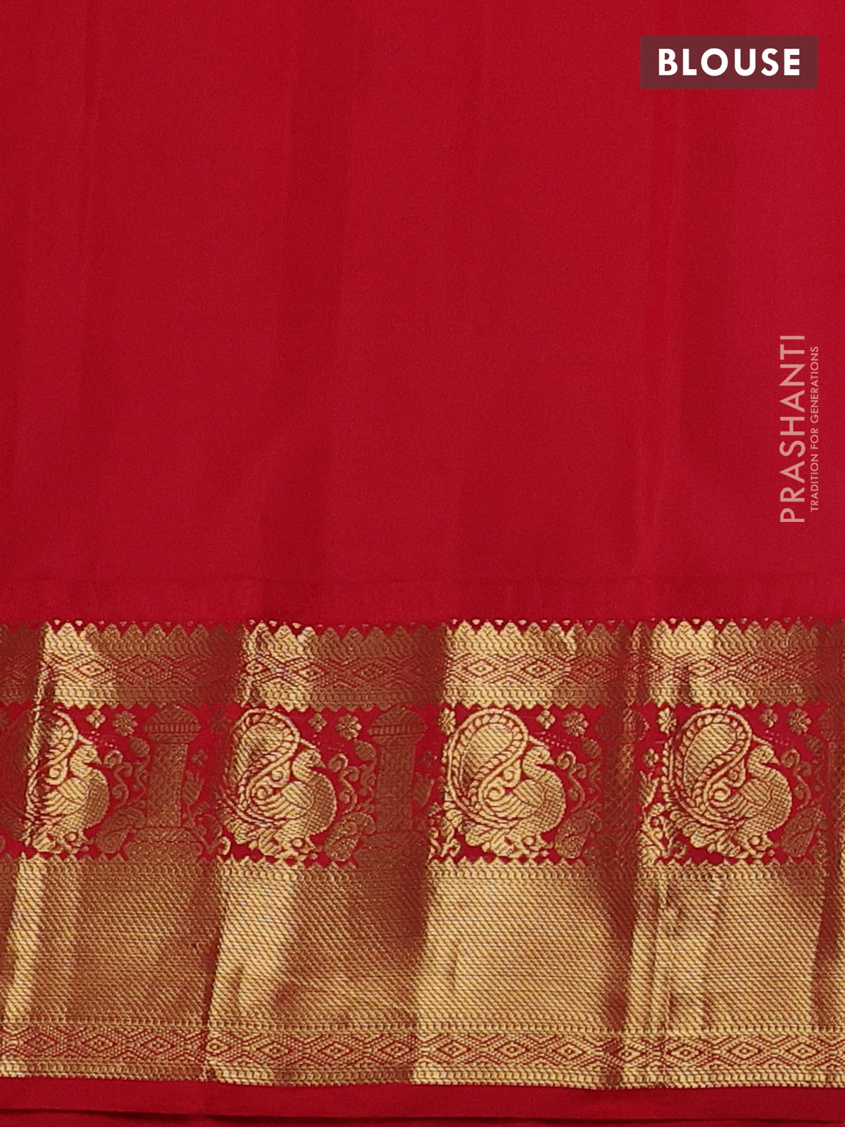 Material : Pure Gadwal SILK MARK CERTIFIED Blouse : Attached Length of saree : 6.2 mts (5.5 mts saree &... Read more