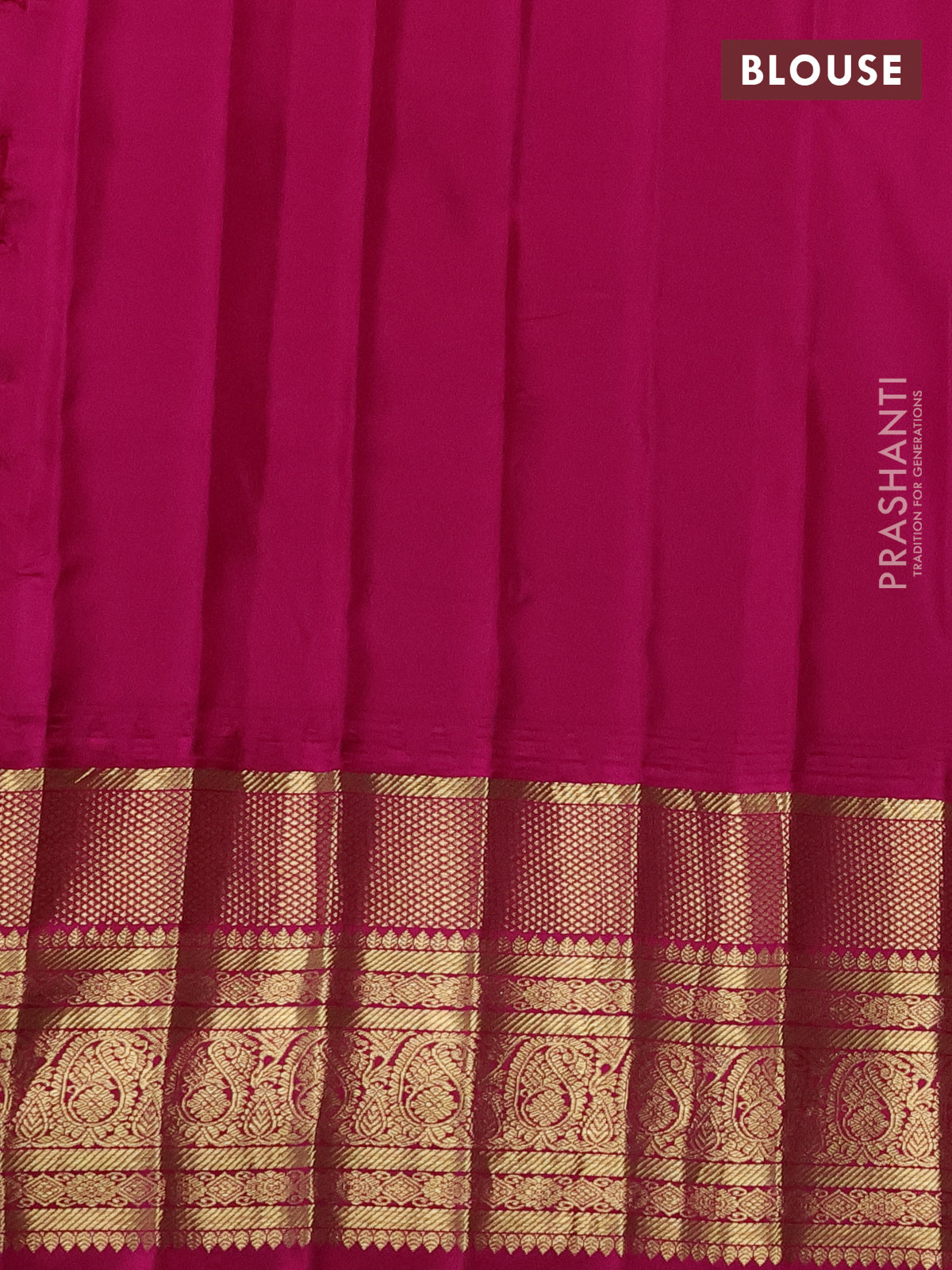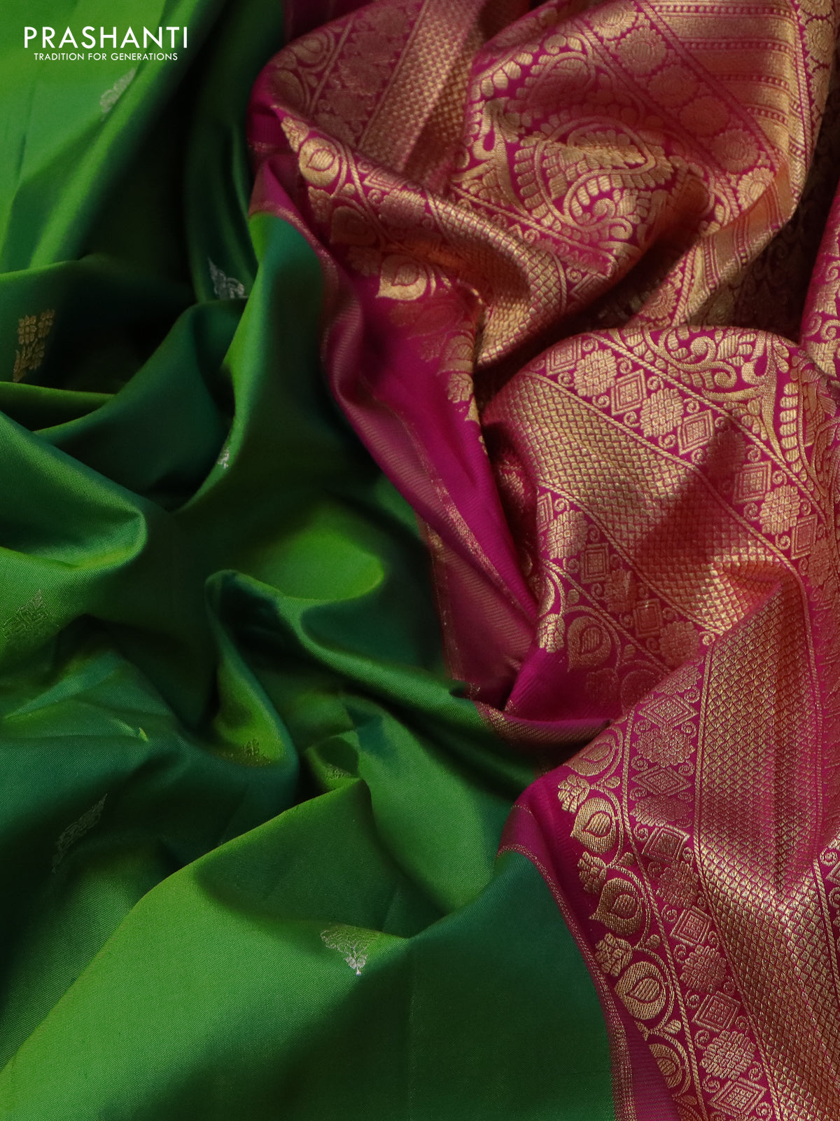 Pure gadwal silk saree parrot green and pink with silver zari woven Buttas and long zari woven korvai border