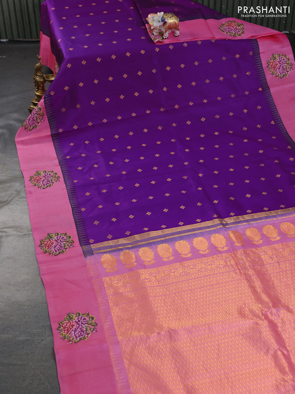 Pure gadwal silk saree purple and pink with zari woven buttas and embroided butta border