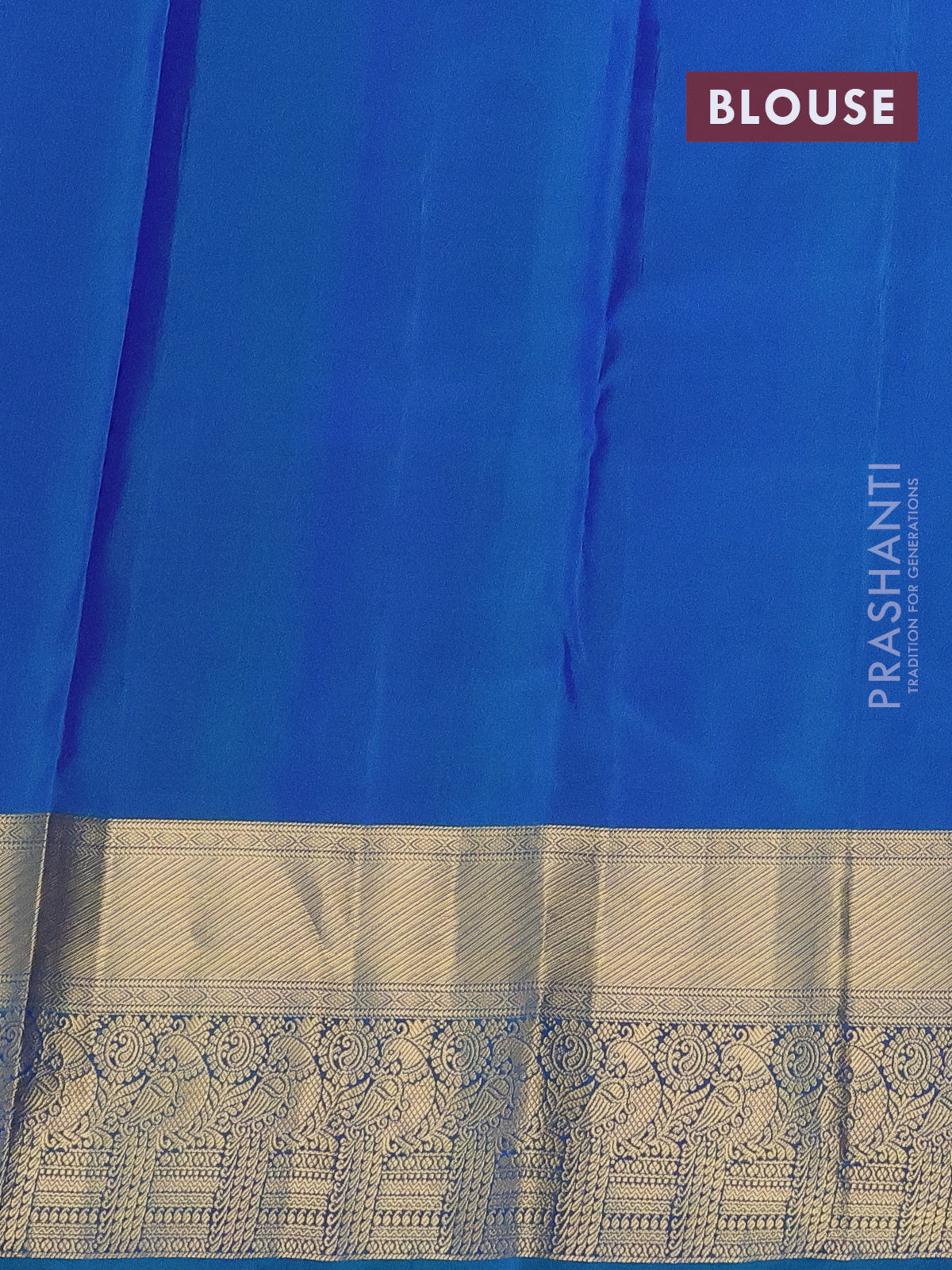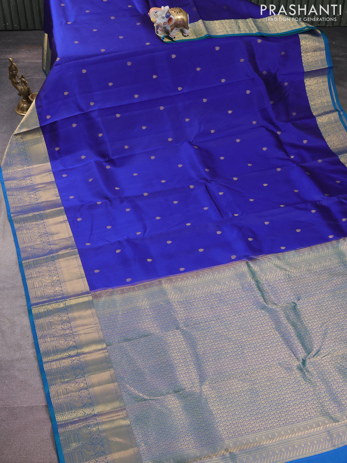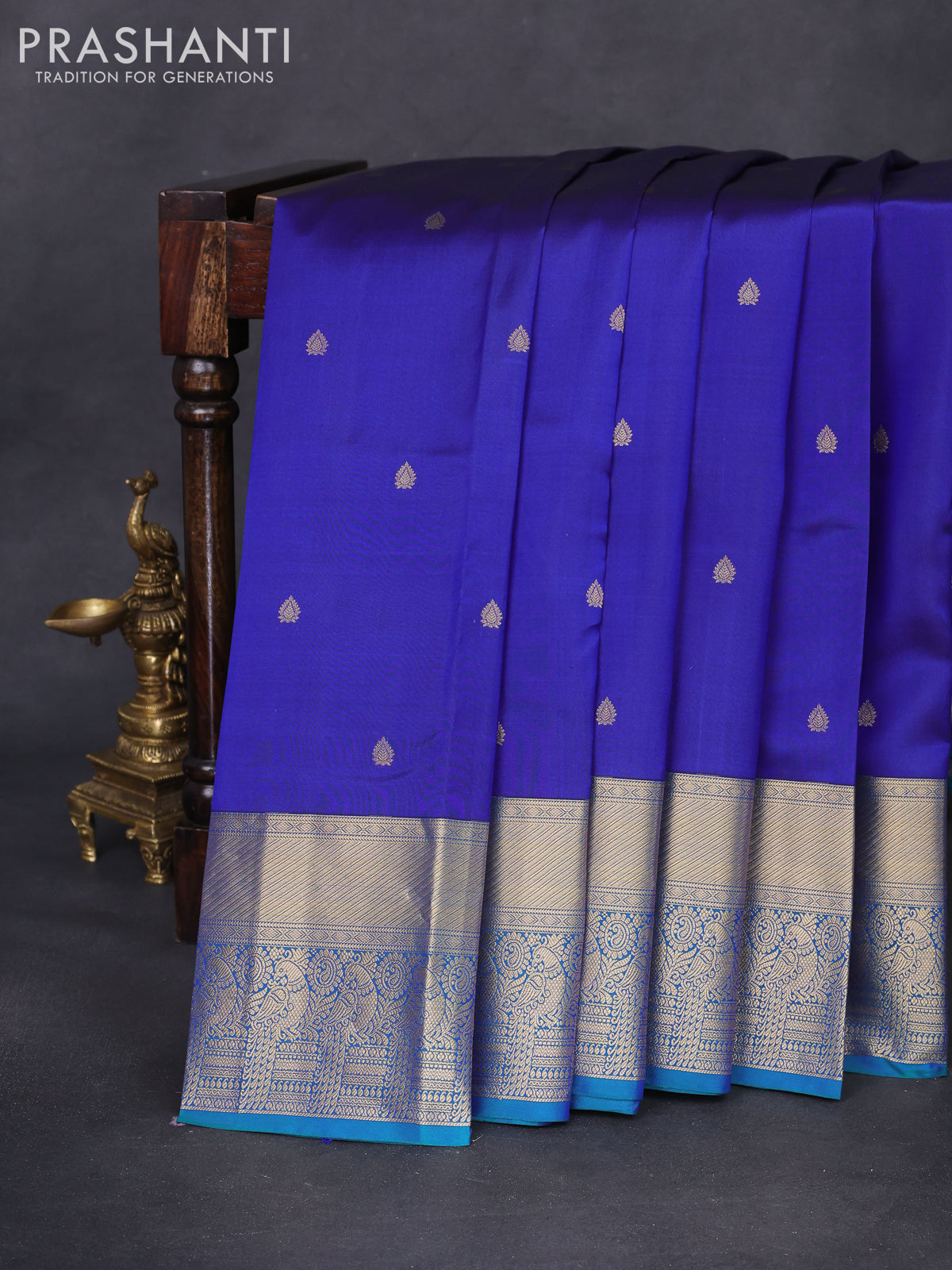 Pure kanchipuram silk saree blue and dual shade of green with zari woven buttas and rich zari woven border