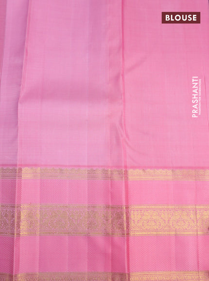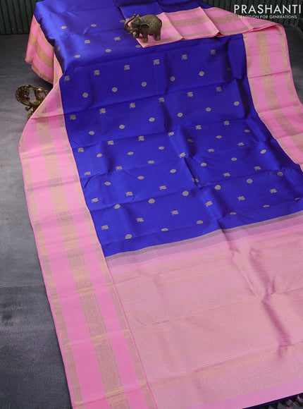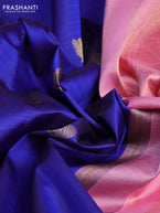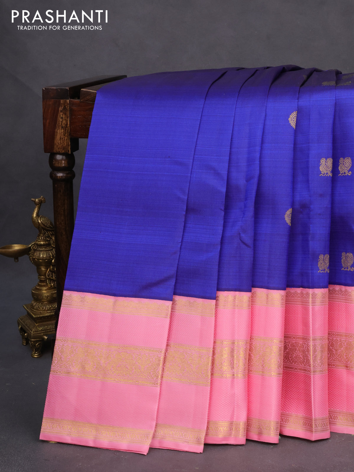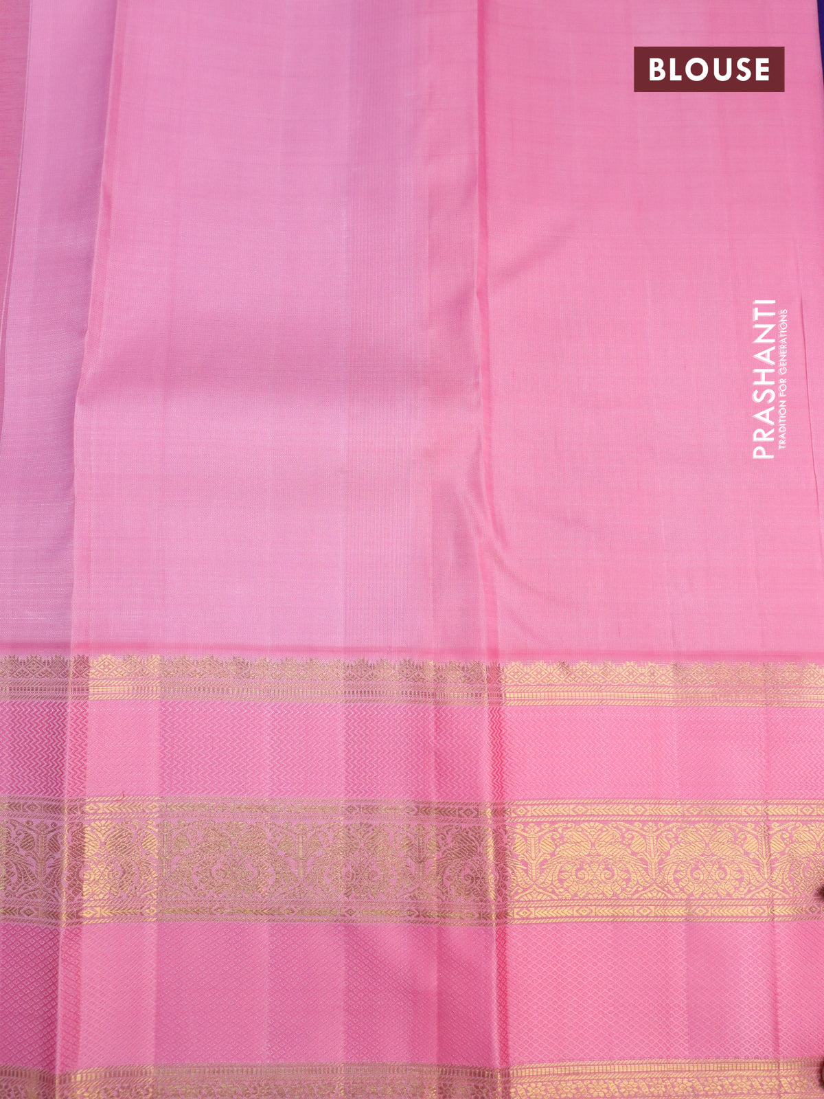 Pure kanchipuram silk saree blue and light pink with annam zari woven buttas and zari woven border