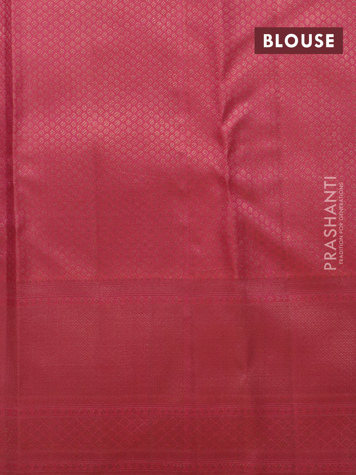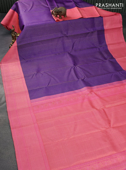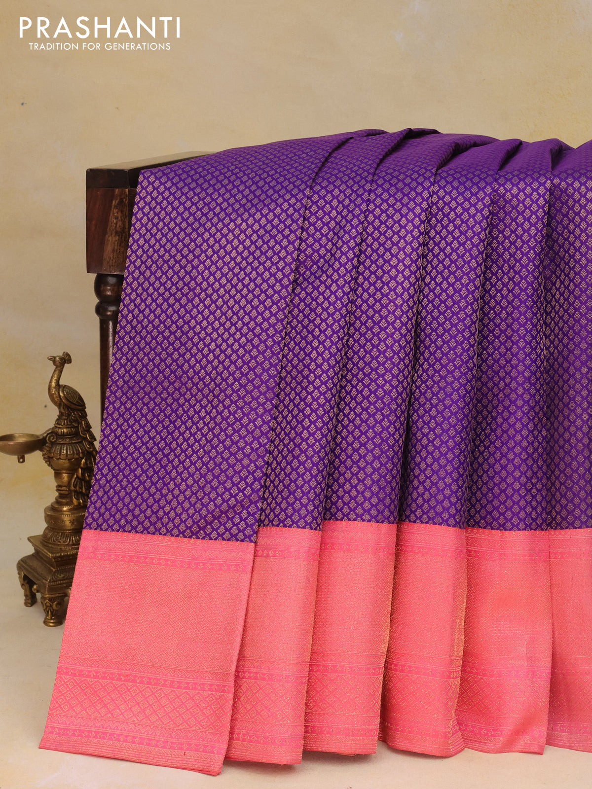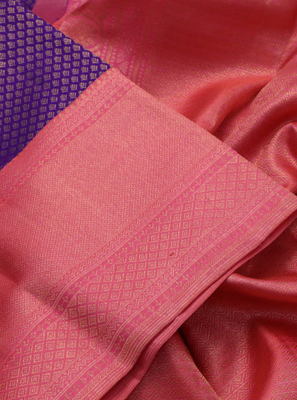 Pure kanchipuram silk saree blue and pink with allover zari woven brocade weaves and zari woven border