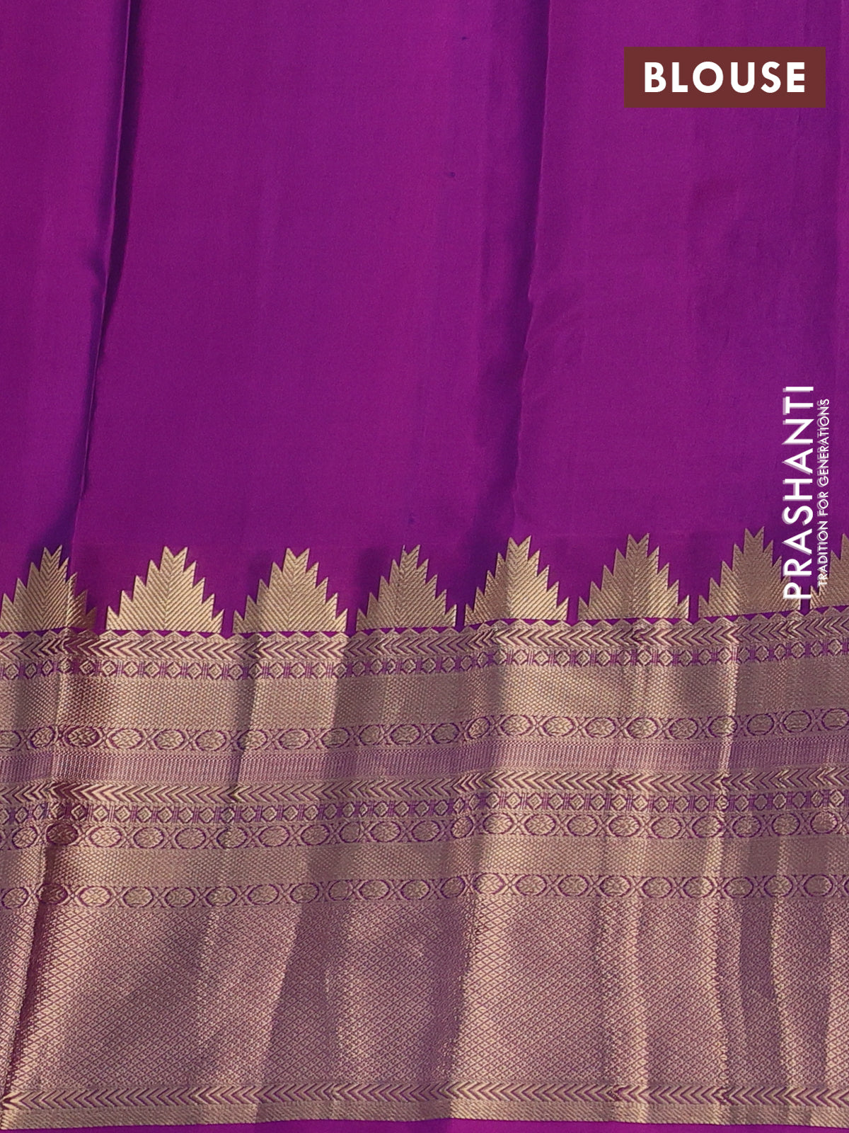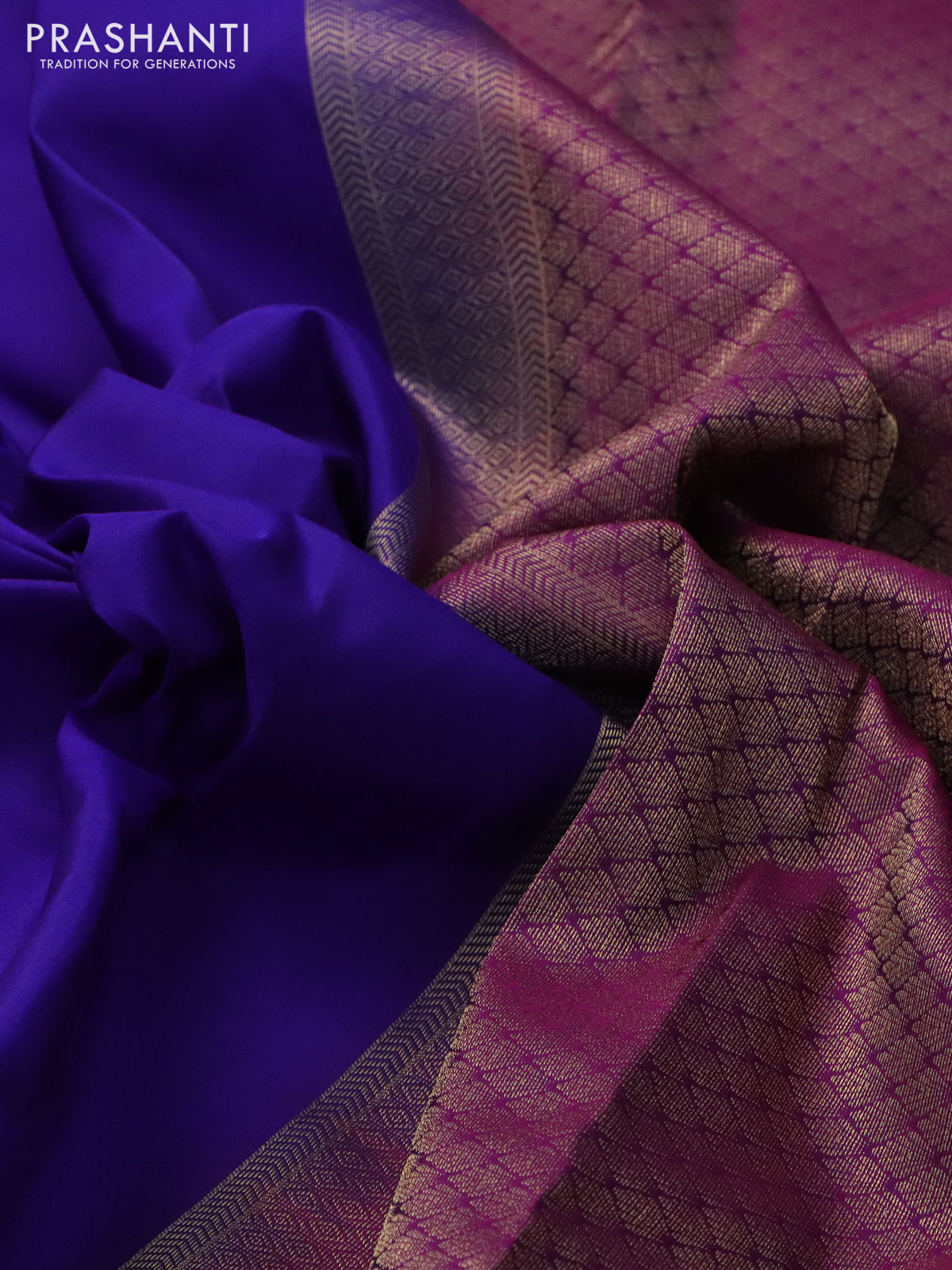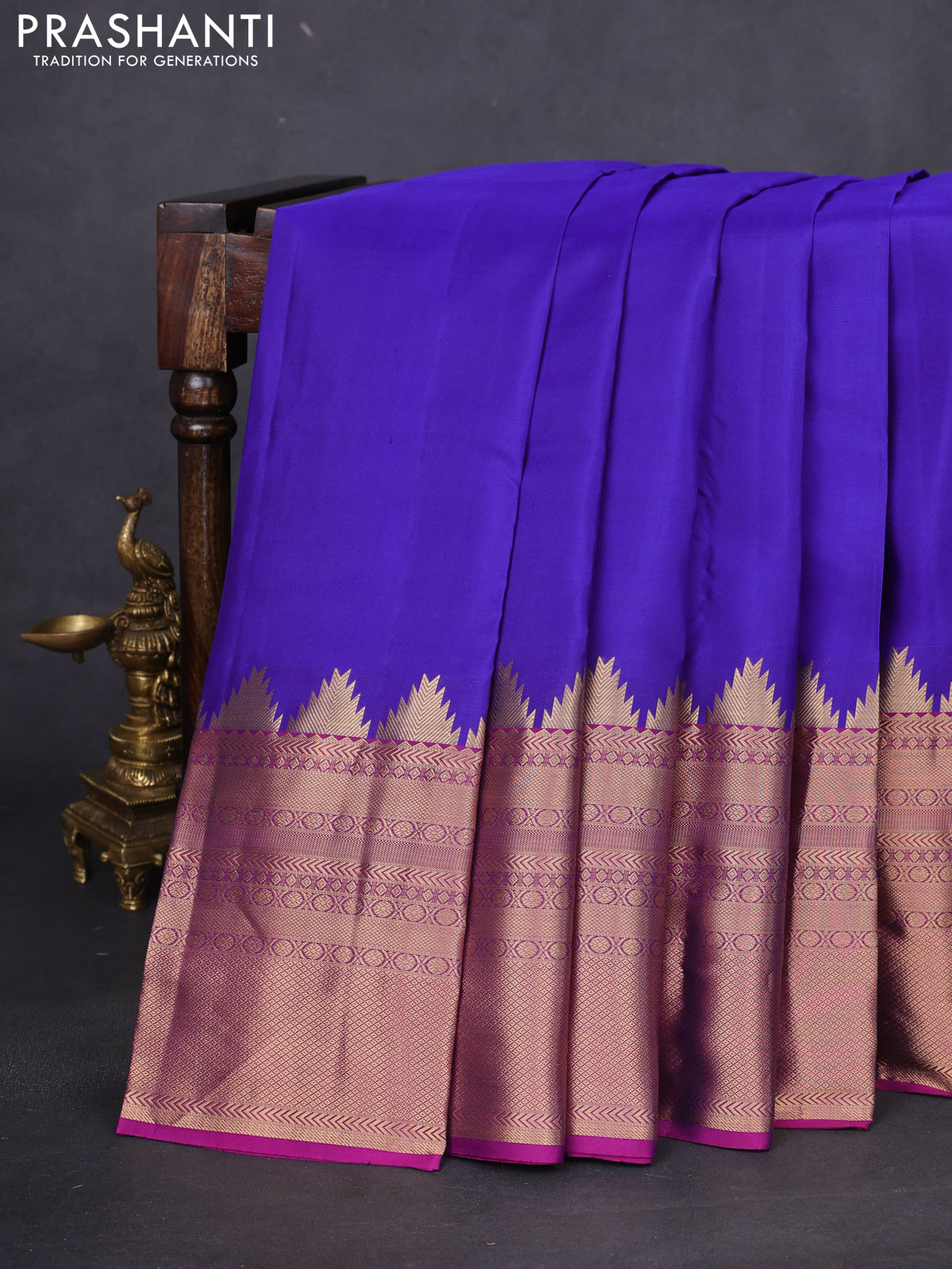 Pure kanchipuram silk saree blue and purple with plain body and long temple zari woven border