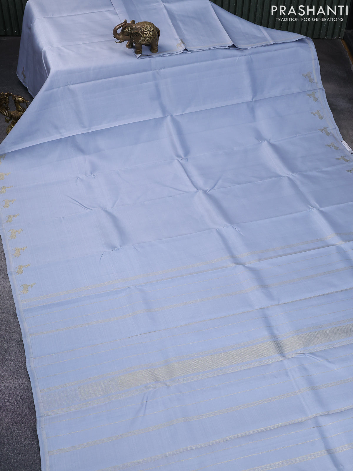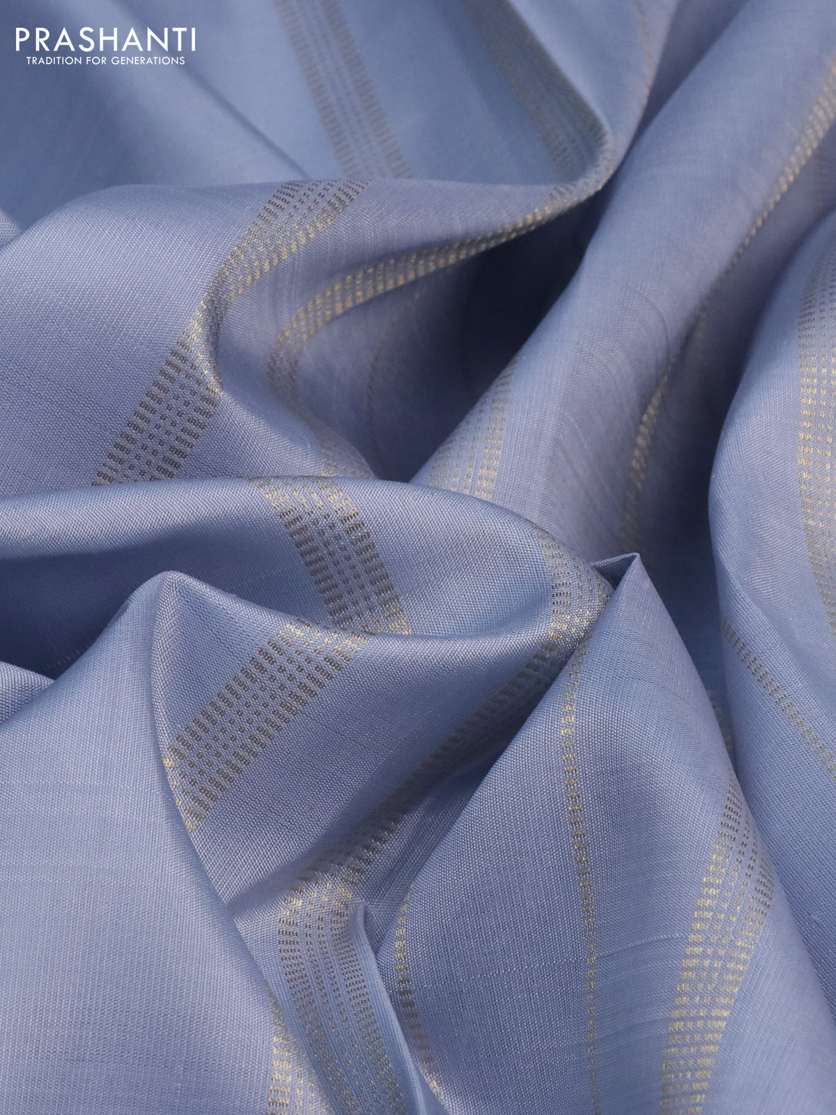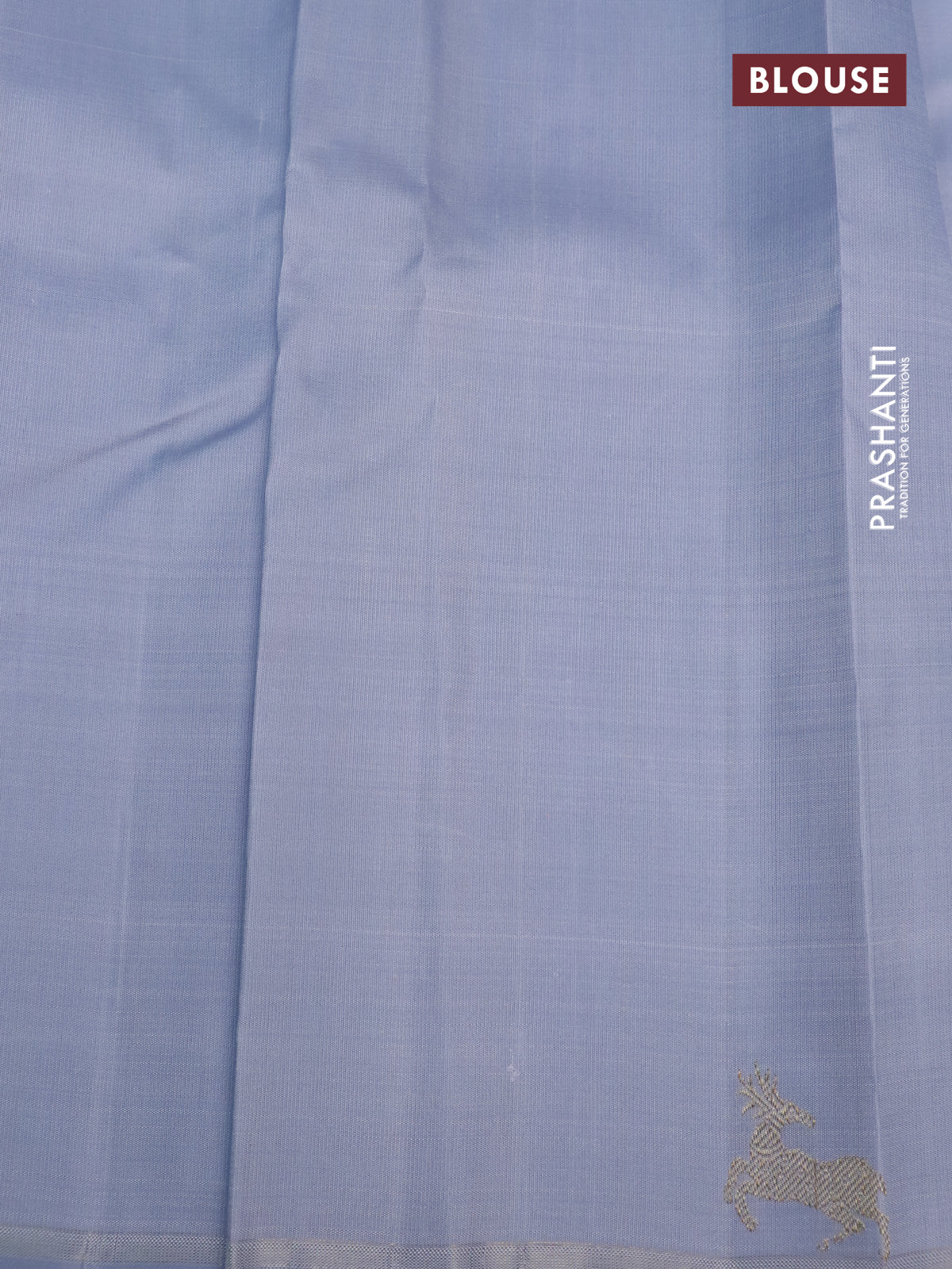 Pure kanchipuram silk saree bluish grey with plain body and zari woven butta border