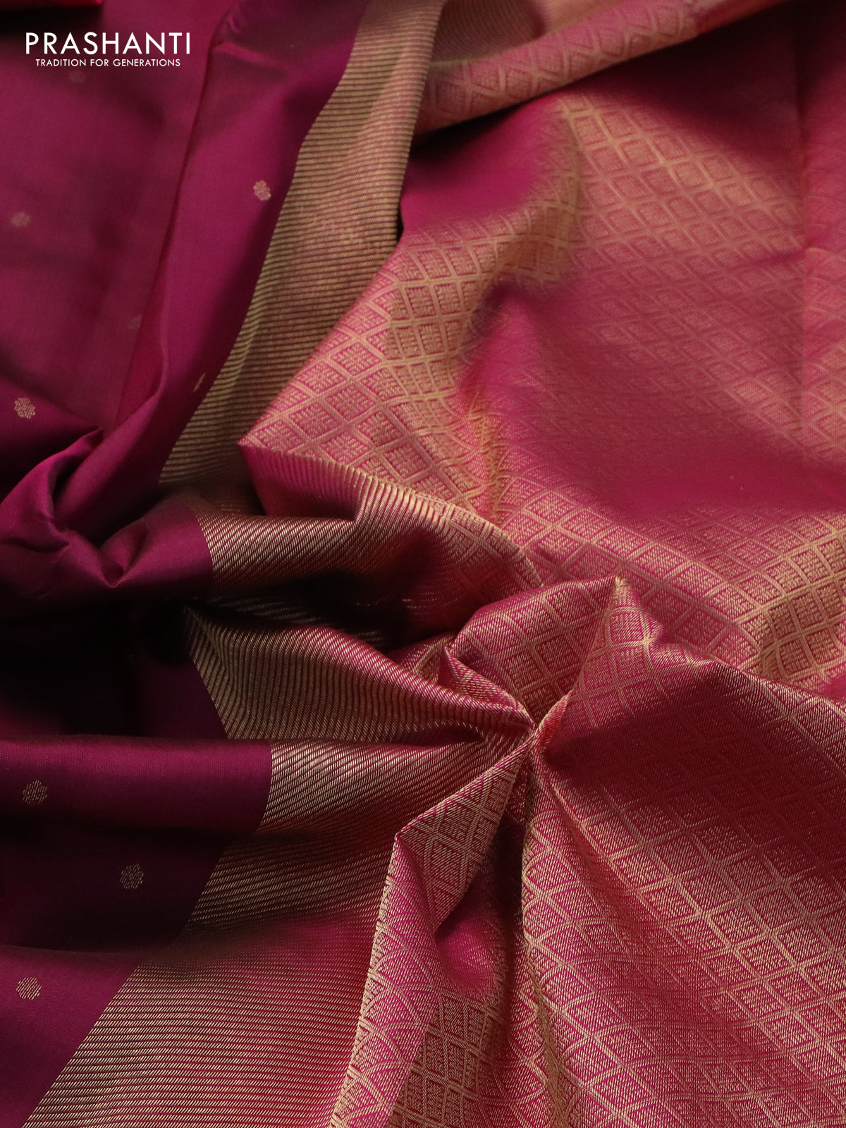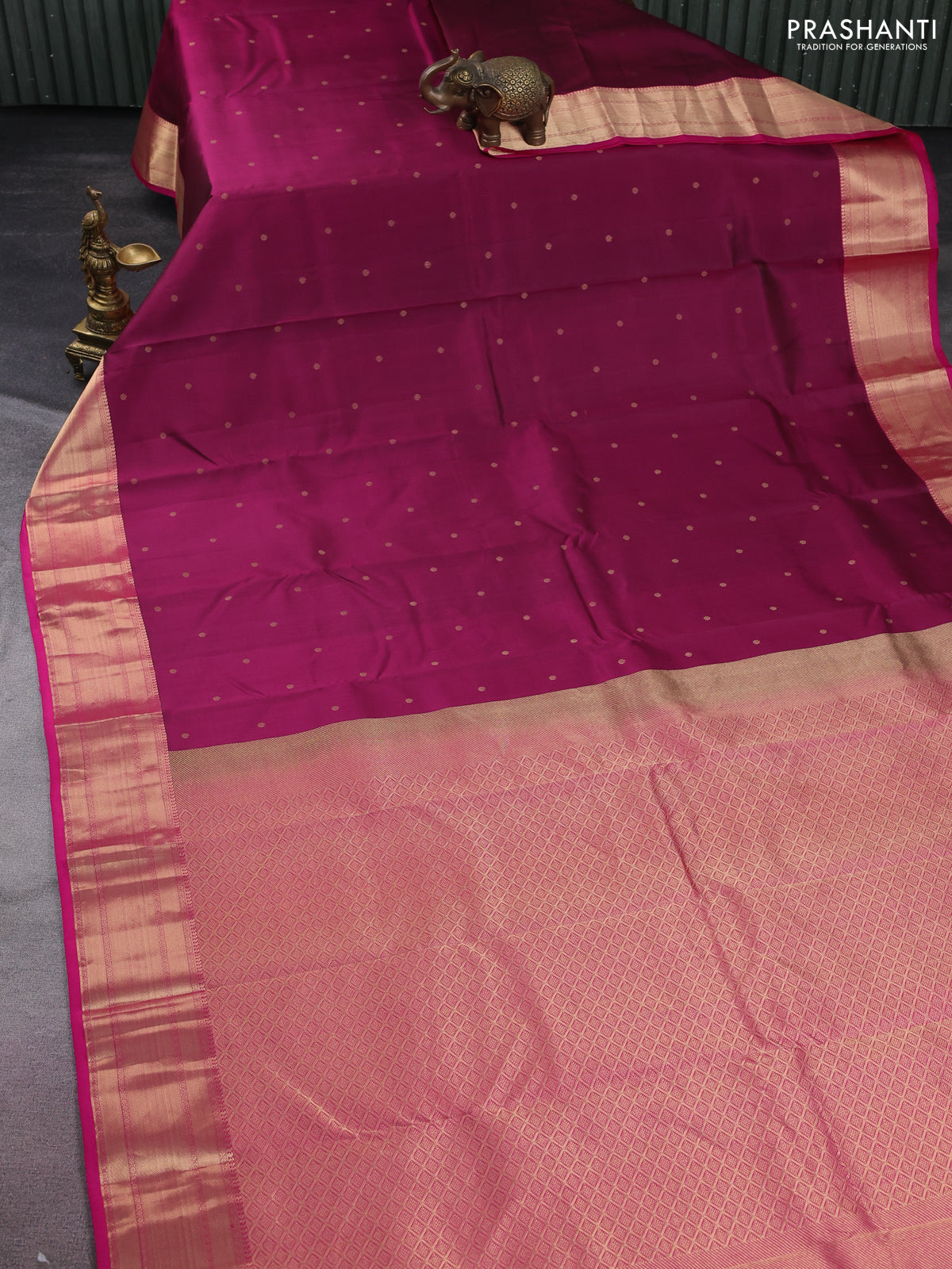 Pure kanchipuram silk saree dark magenta pink and pink with zari woven buttas and rich zari woven border
