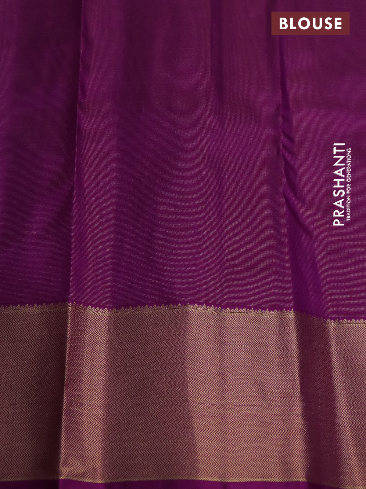Pure kanchipuram silk saree dual shade of blue and purple with allover zari weaves & buttas and zari woven border
