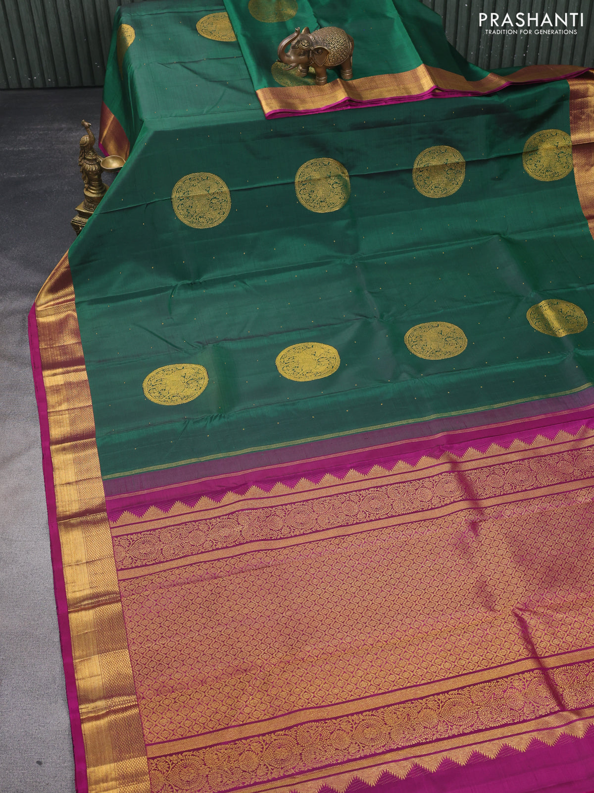 Pure kanchipuram silk saree green and magenta pink with zari woven buttas and zari woven border