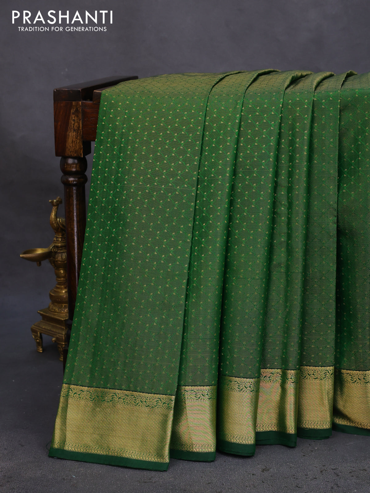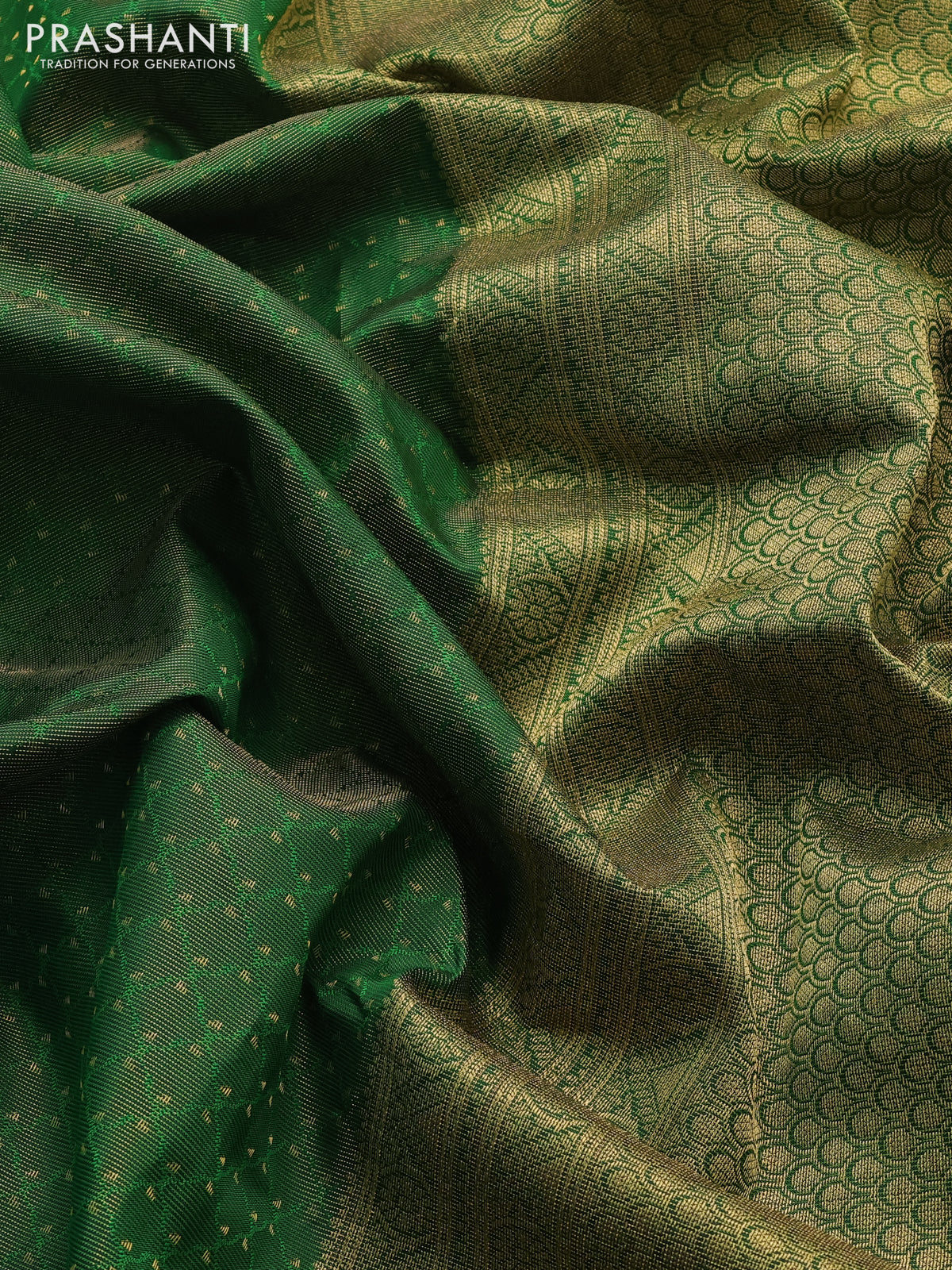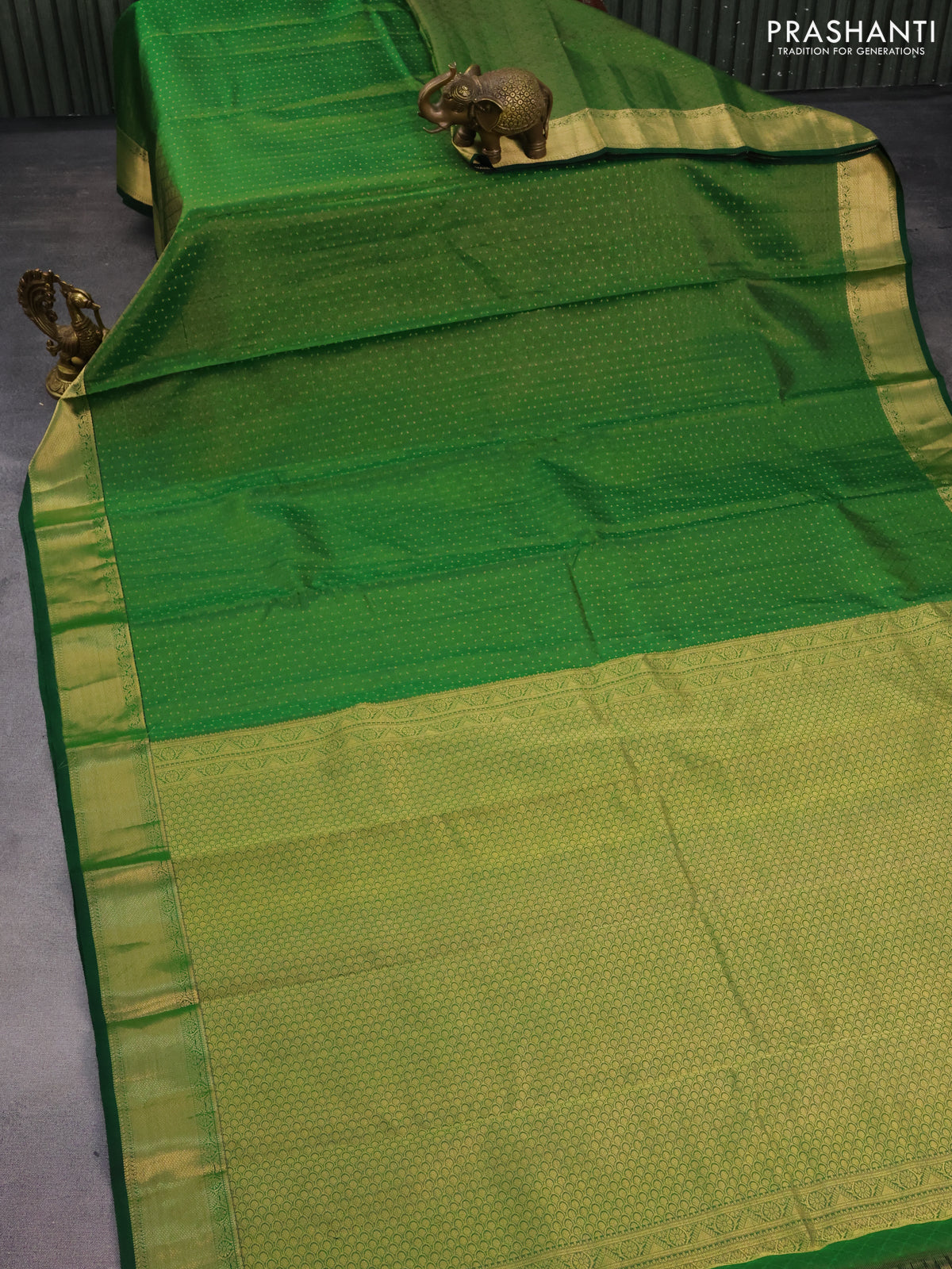 Pure kanchipuram silk saree green with allover zari weaves and zari woven border