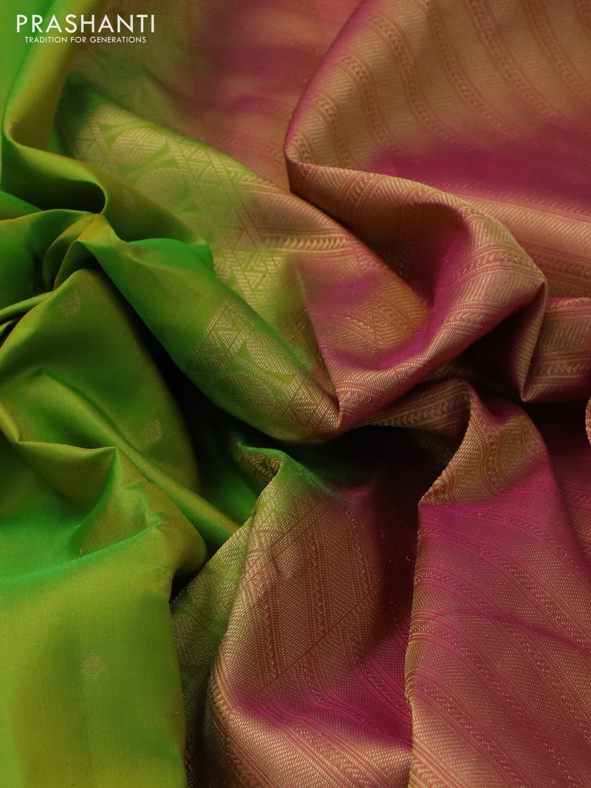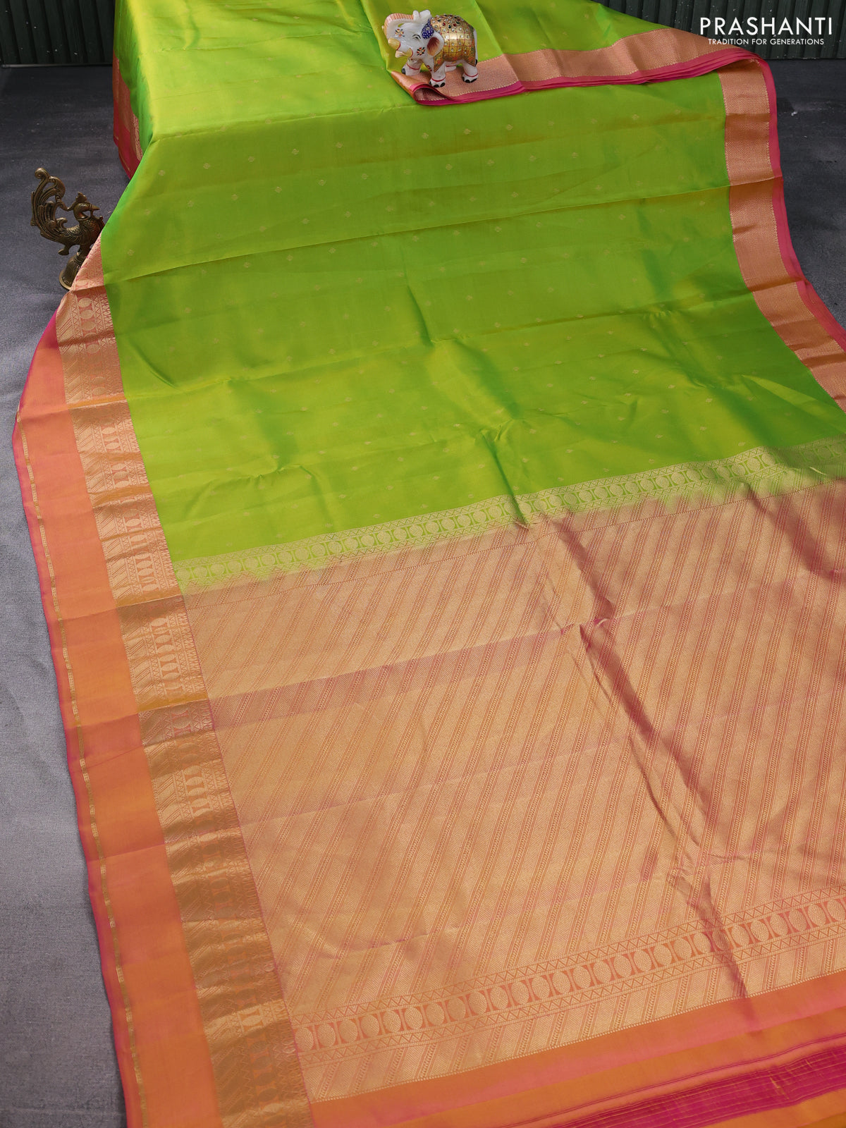 Pure kanchipuram silk saree light green and pink with allover zari woven buttas and rettapet zari woven border