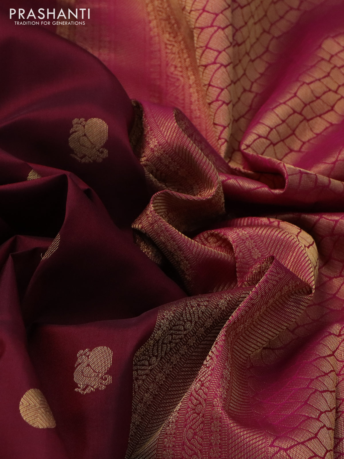 Pure kanchipuram silk saree maroon and pink with zari woven buttas and long rettapet zari woven border