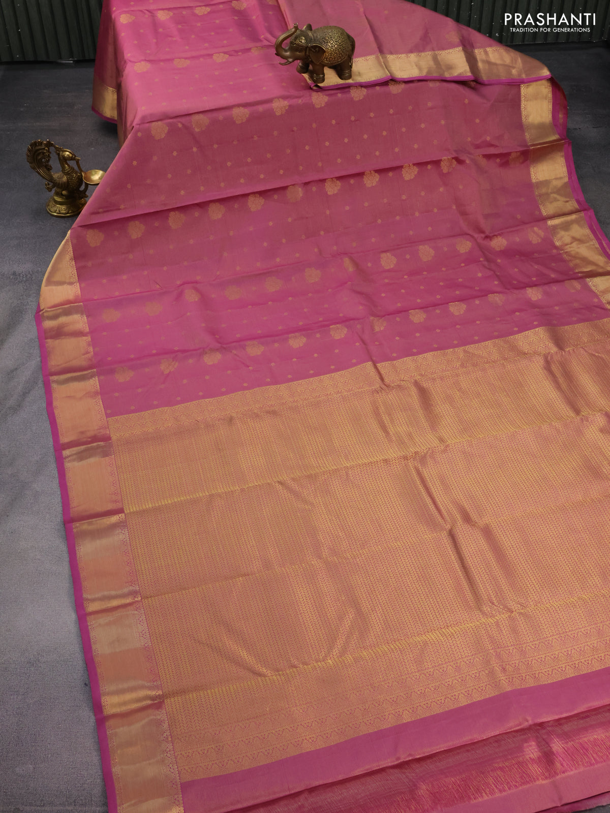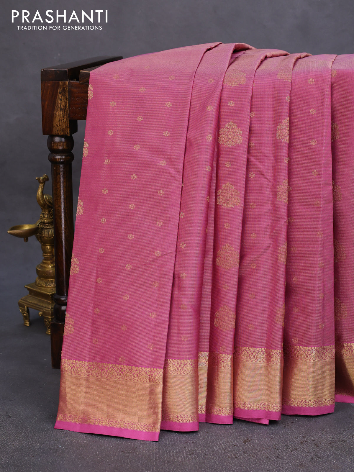 Pure kanchipuram silk saree mauve pink with allover vairosi pattern & zari buttas and zari woven border