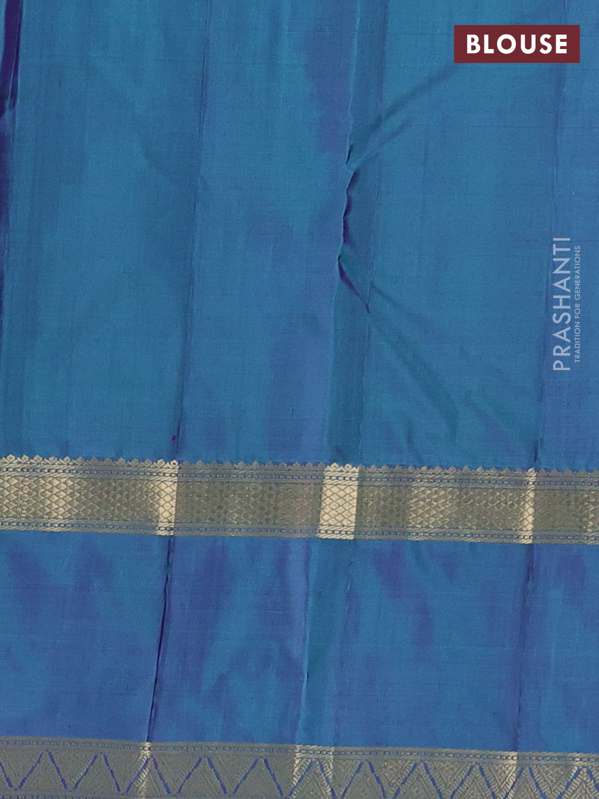 Pure kanchipuram silk saree mild purple and dual shade of teal green with zari woven buttas and long zari woven butta border