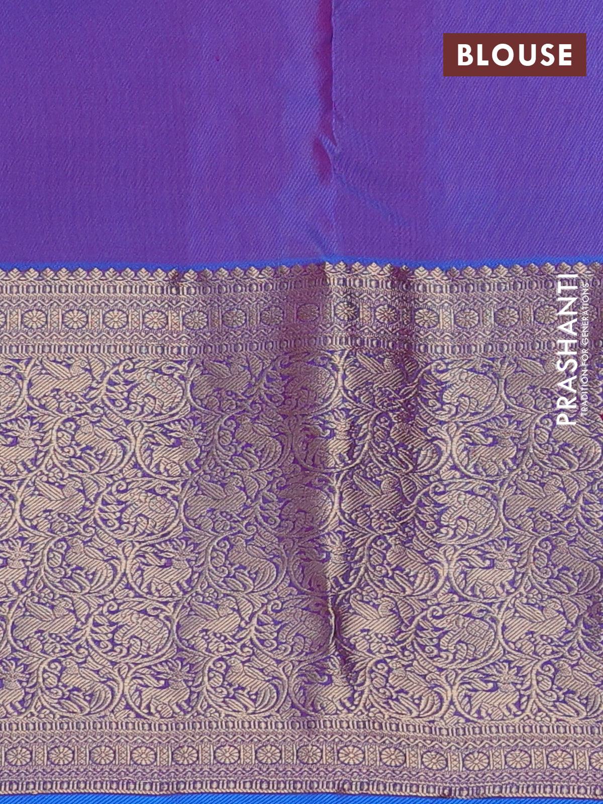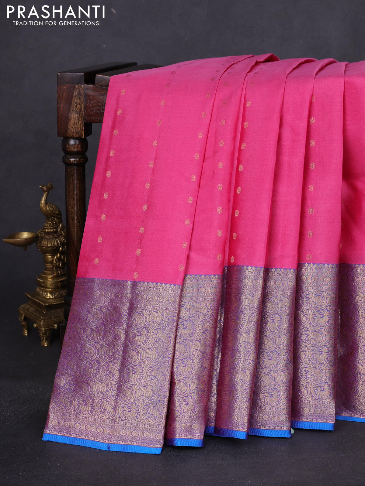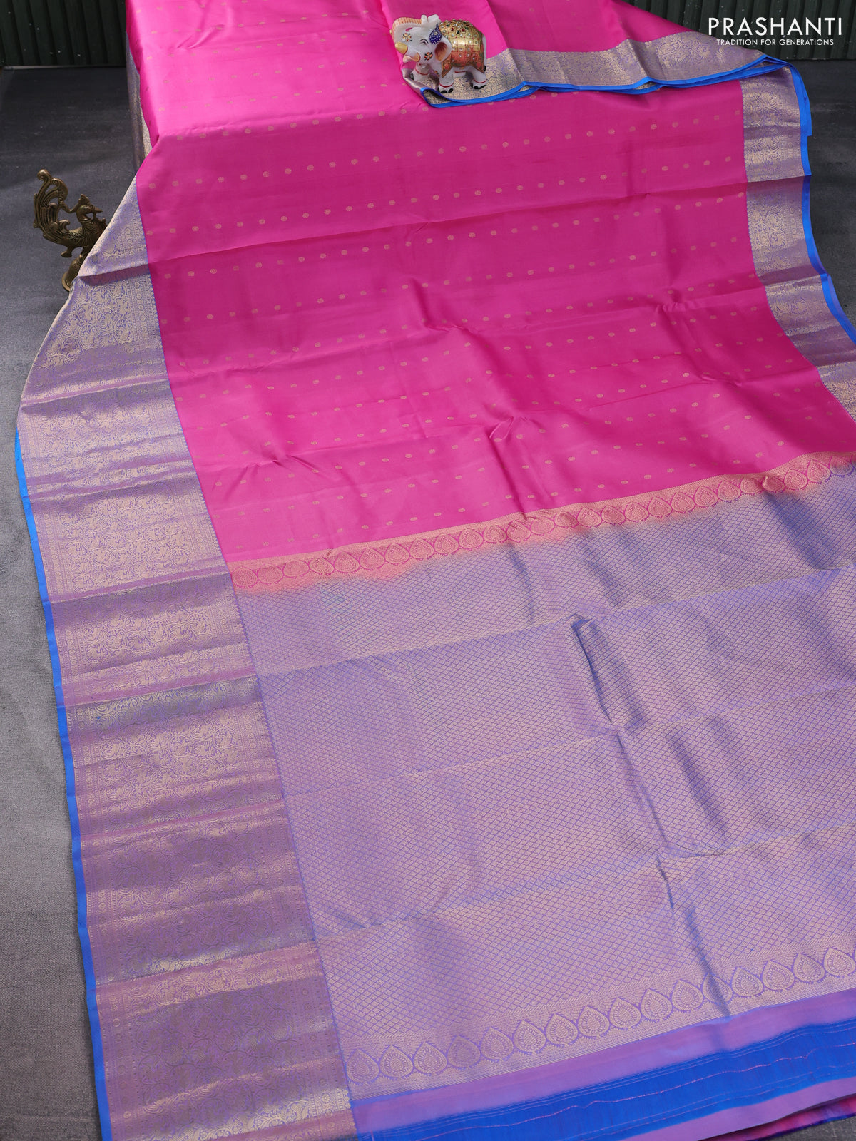 Pure kanchipuram silk saree pink and dual shade of blue with allover zari woven buttas and long rich zari woven border