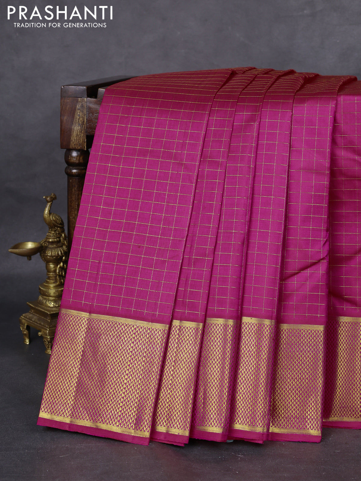 Pure kanchipuram silk saree pink with allover zari checked pattern and zari woven border