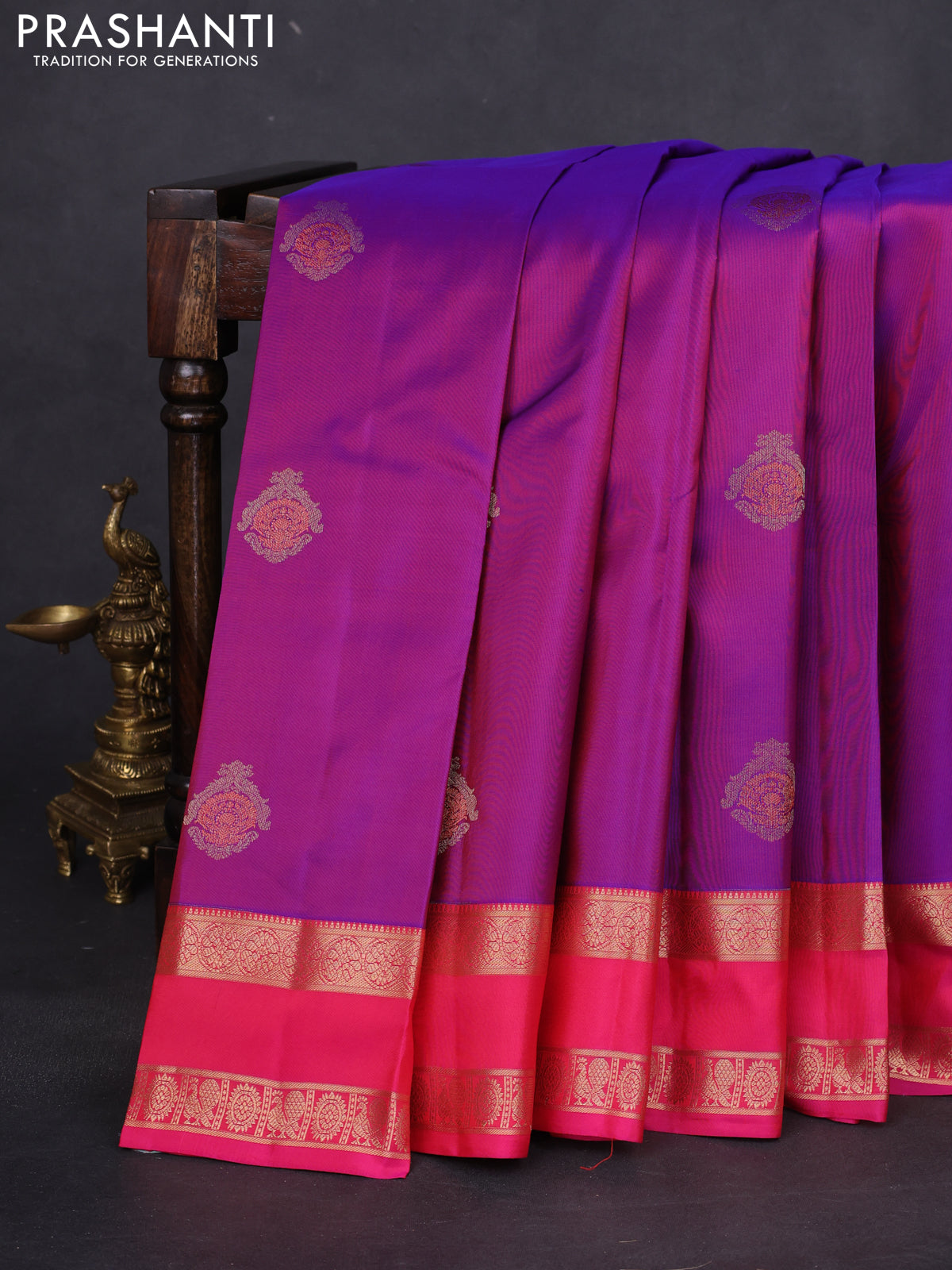 Pure kanchipuram silk saree purple and pink with allover zari woven buttas and rettapet zari woven border