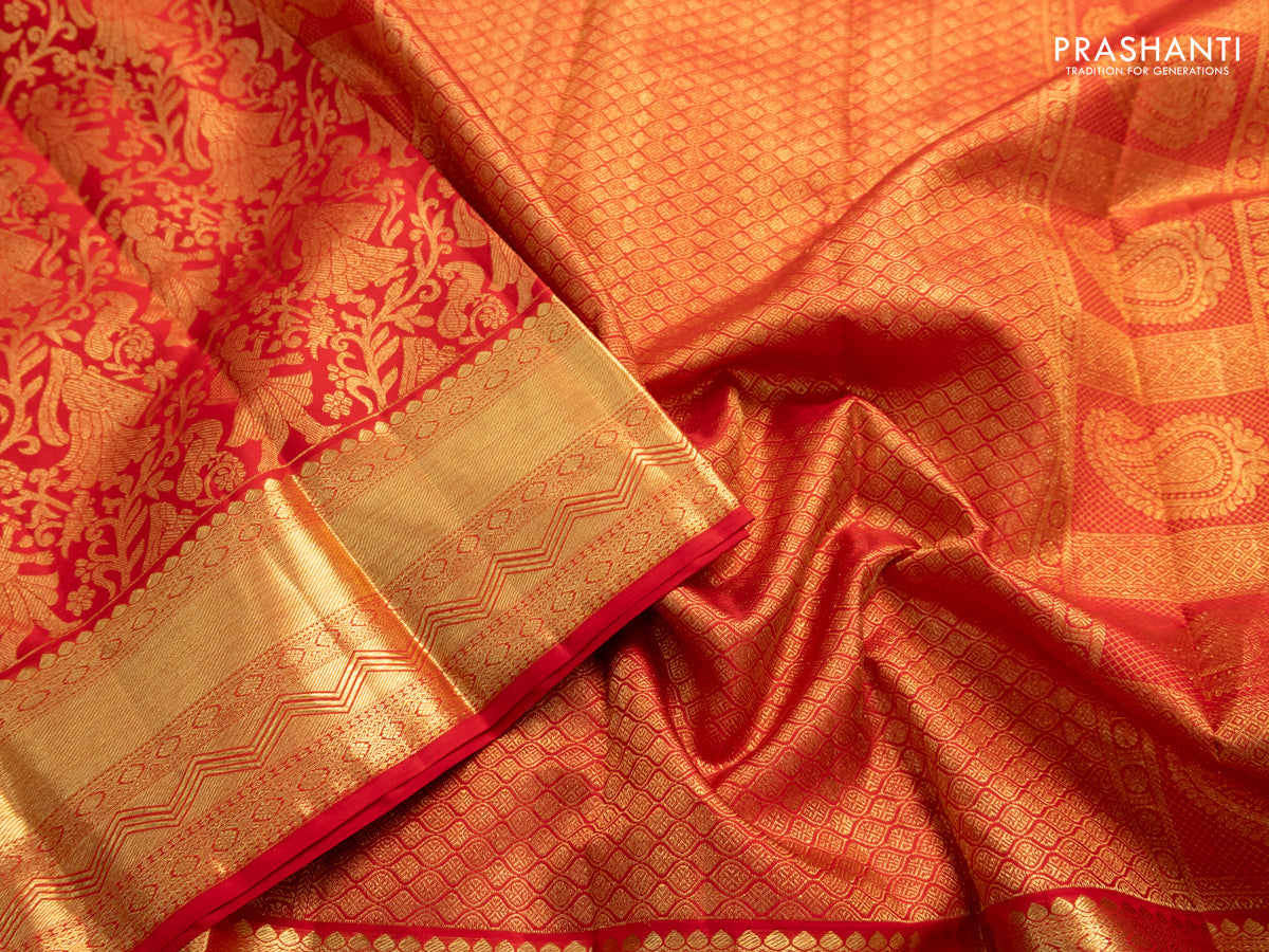 Pure kanchipuram silk saree red with allover zari woven brocade weaves and zari woven border