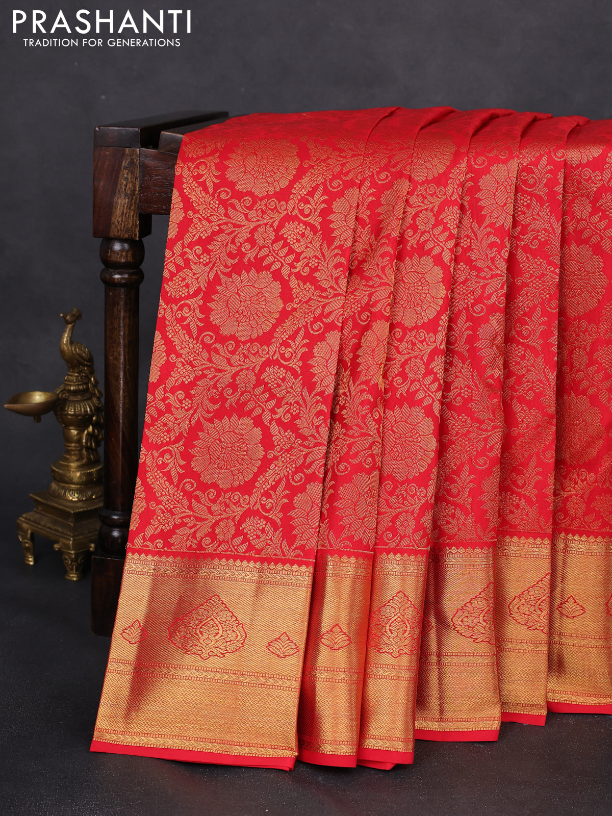 Pure kanchipuram silk saree red with allover zari woven brocade weaves and zari woven border