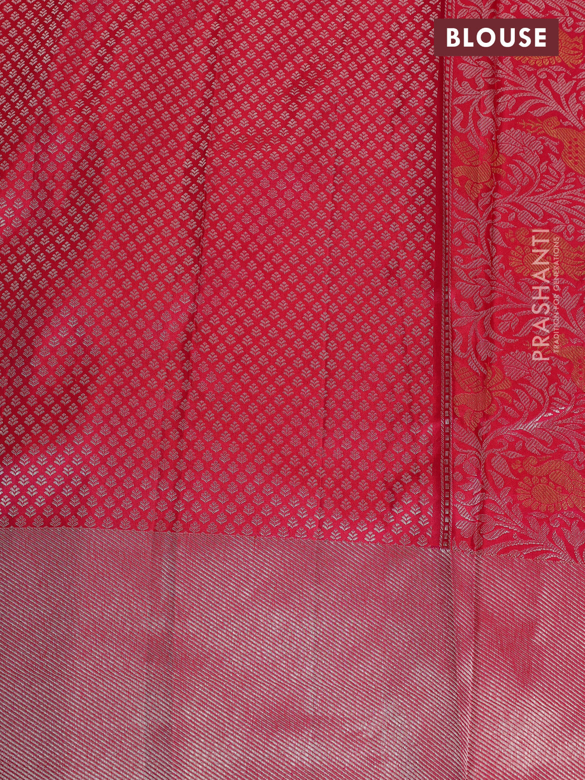 Pure kanchipuram silk saree reddish pink with floral motif zari weaves and silver zari woven border