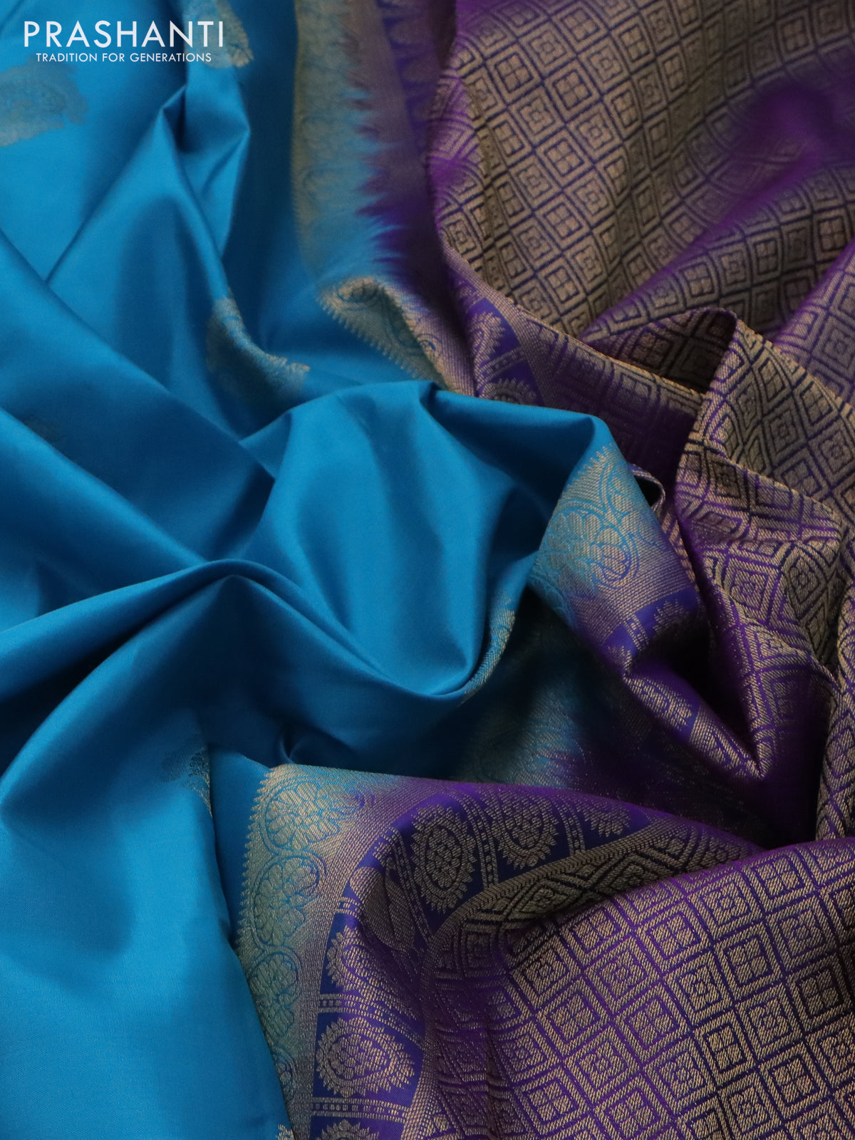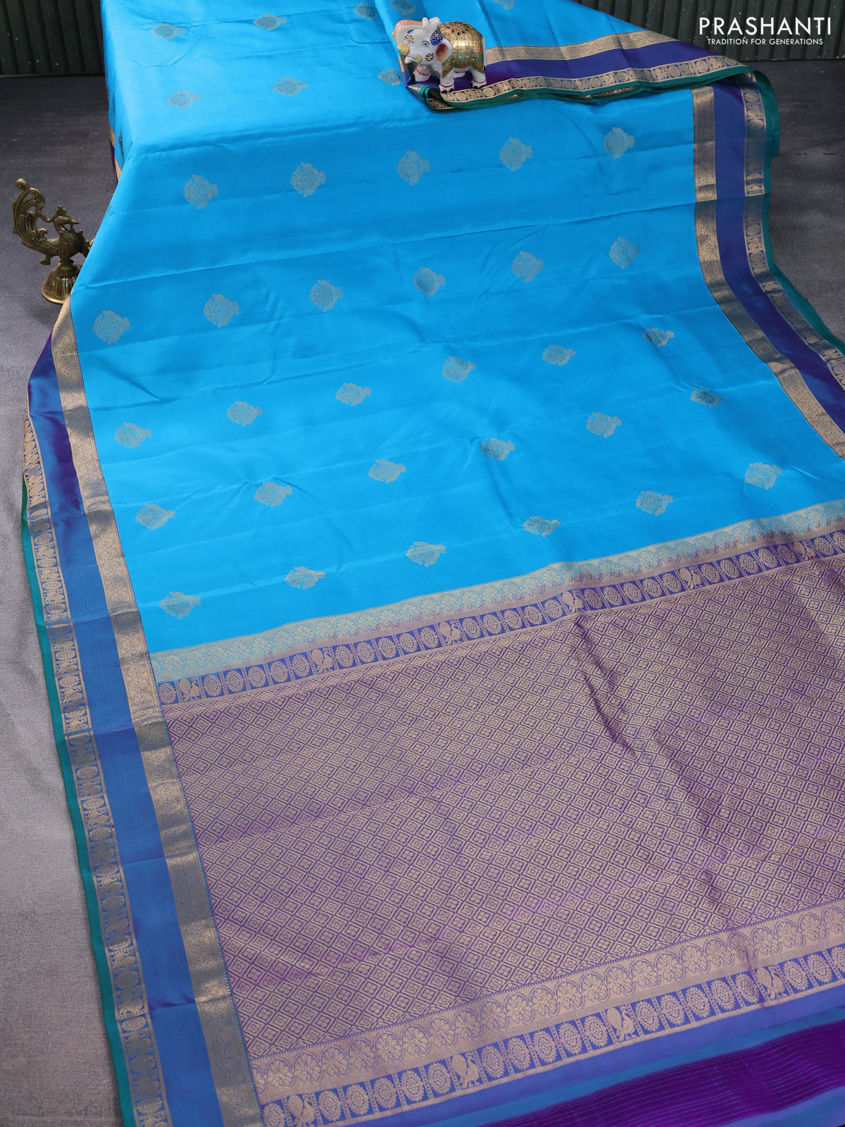 Pure kanchipuram silk saree teal blue and dual shade of blue with zari woven buttas and rettapet zari woven border