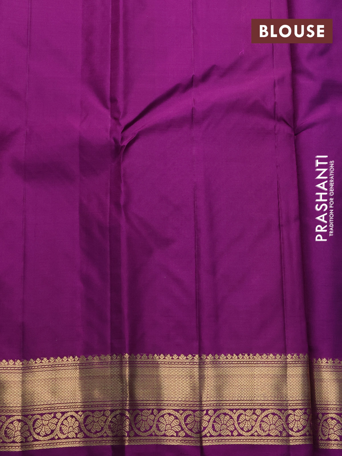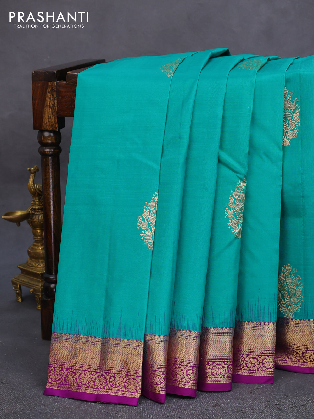 Pure kanchipuram silk saree teal blue and purple with allover vairosi pattern & zari buttas and zari woven border