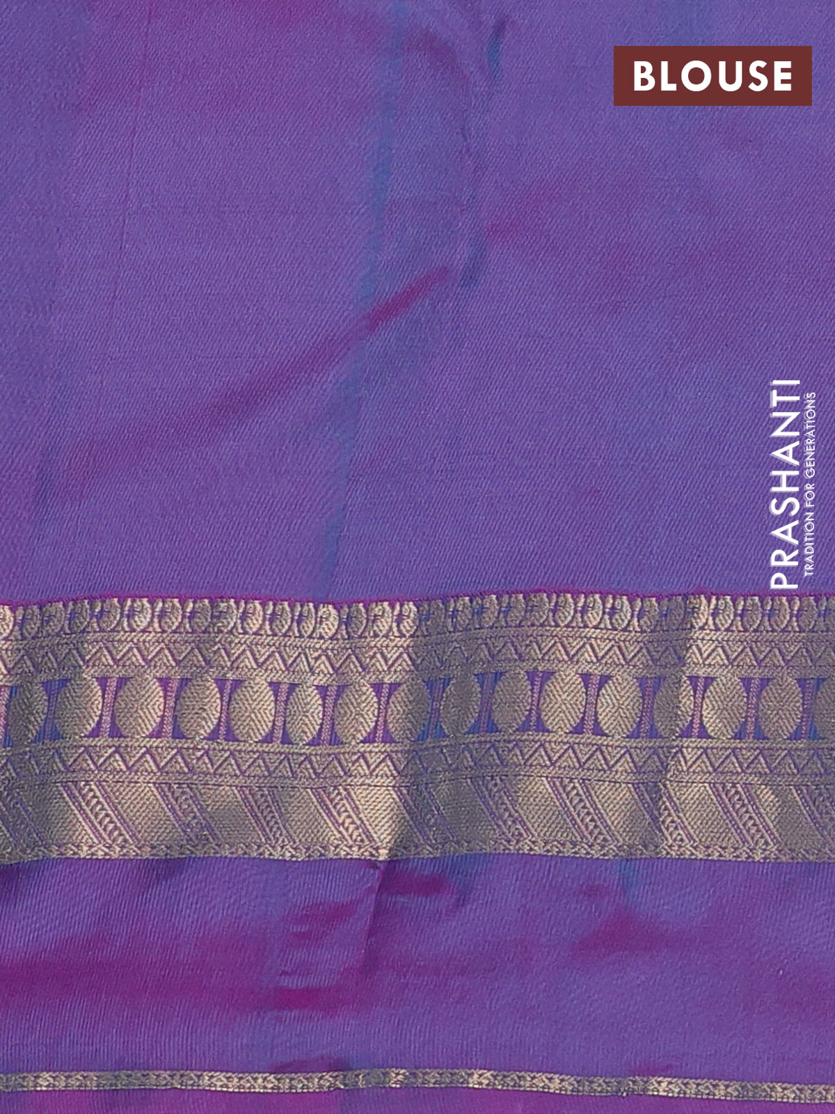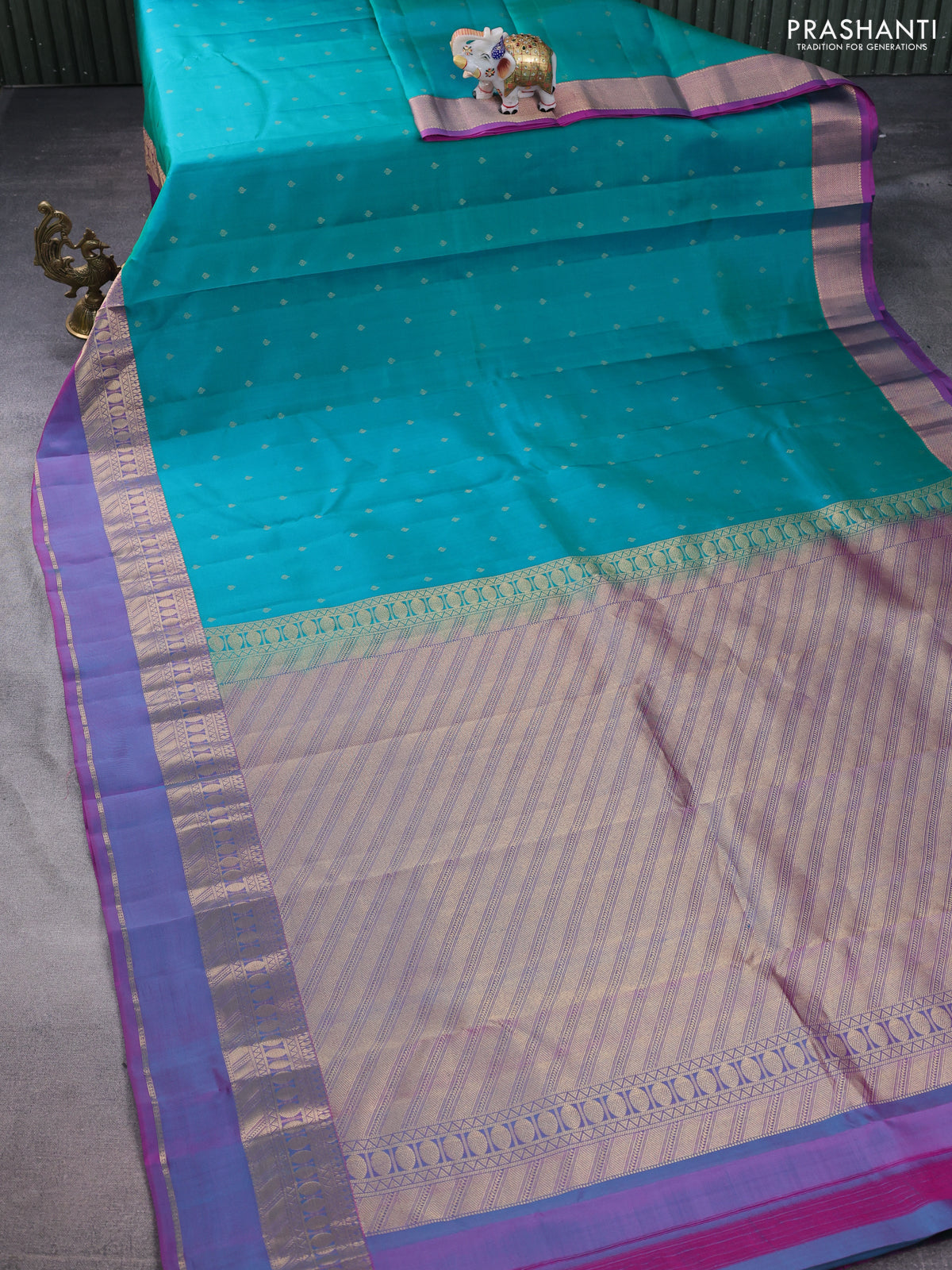 Pure kanchipuram silk saree teal green and purple with allover zari woven buttas and rettapet zari woven border