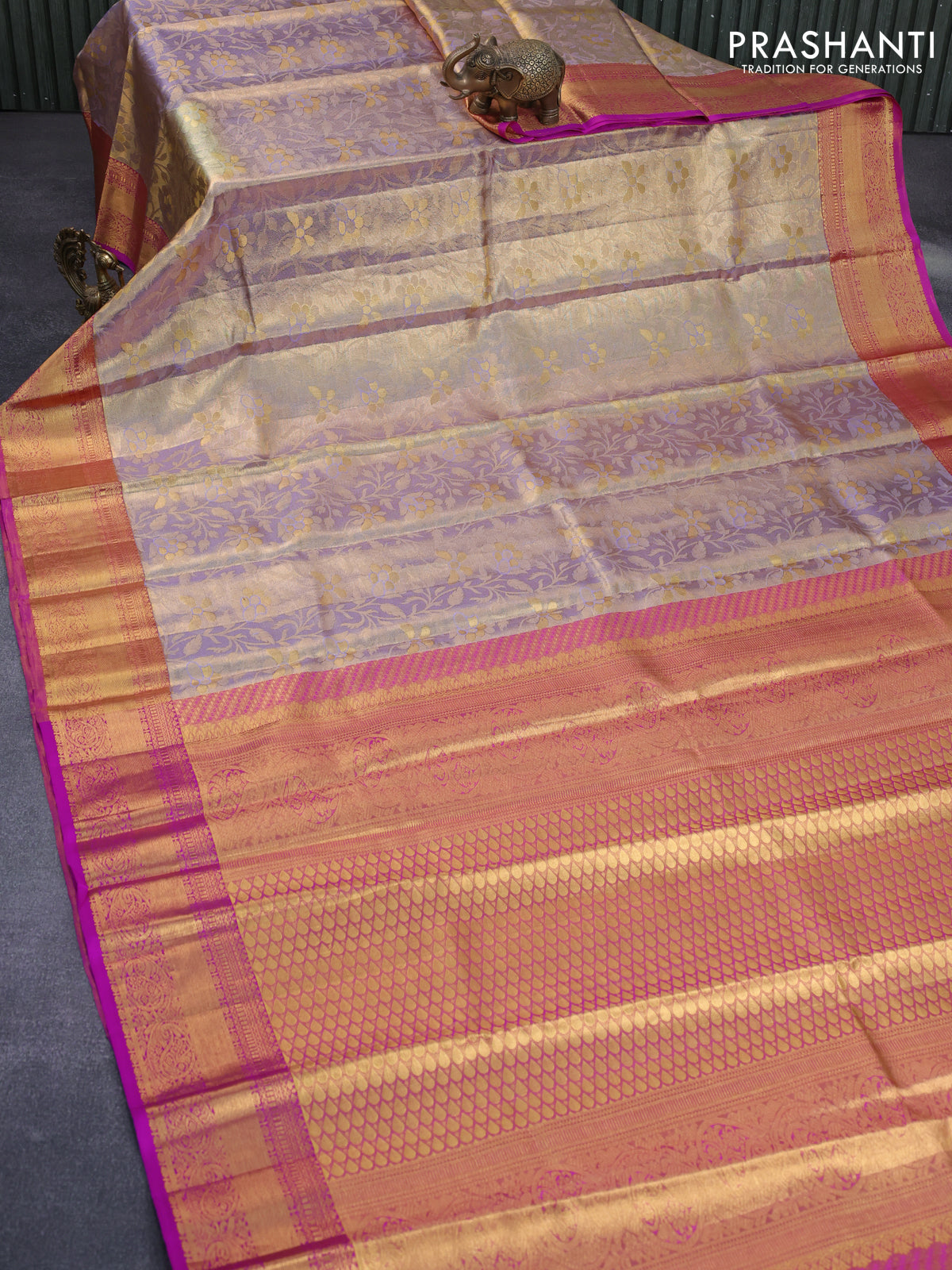 Pure kanchipuram tissue silk saree gold and pink with allover zari woven brocade weaves and zari woven border