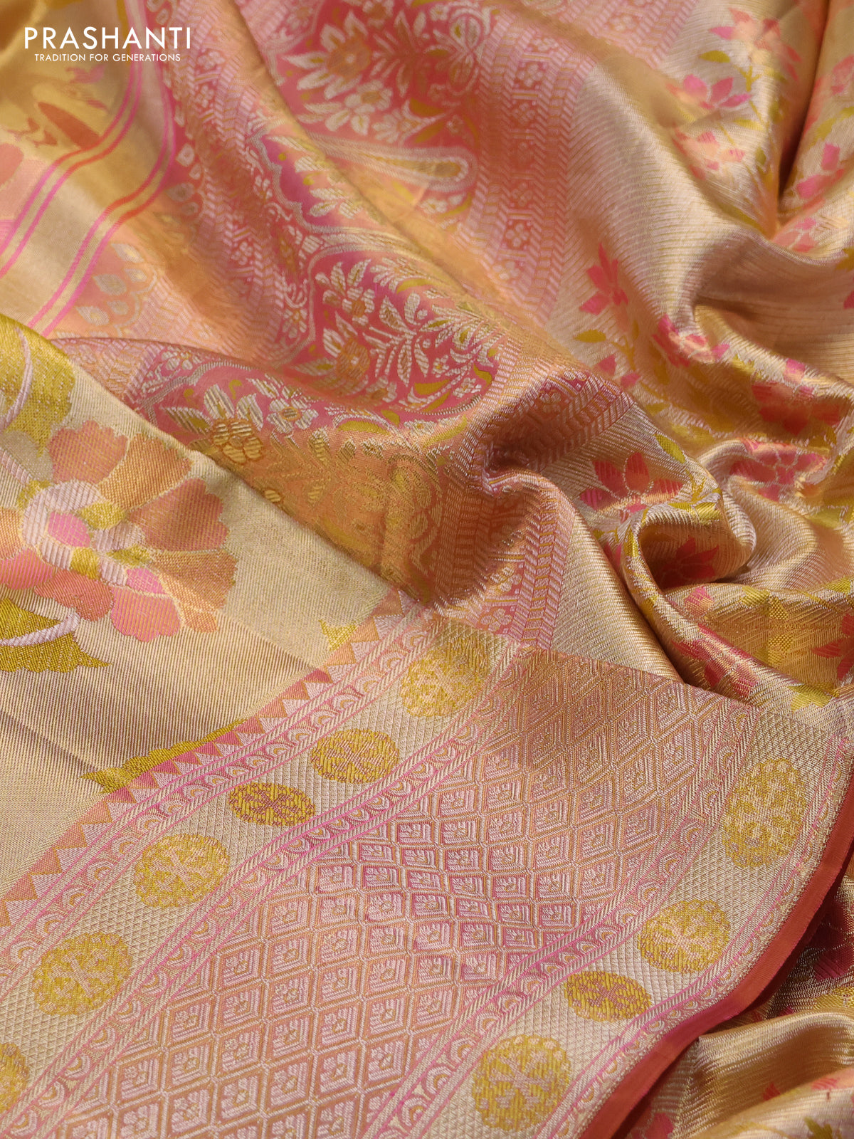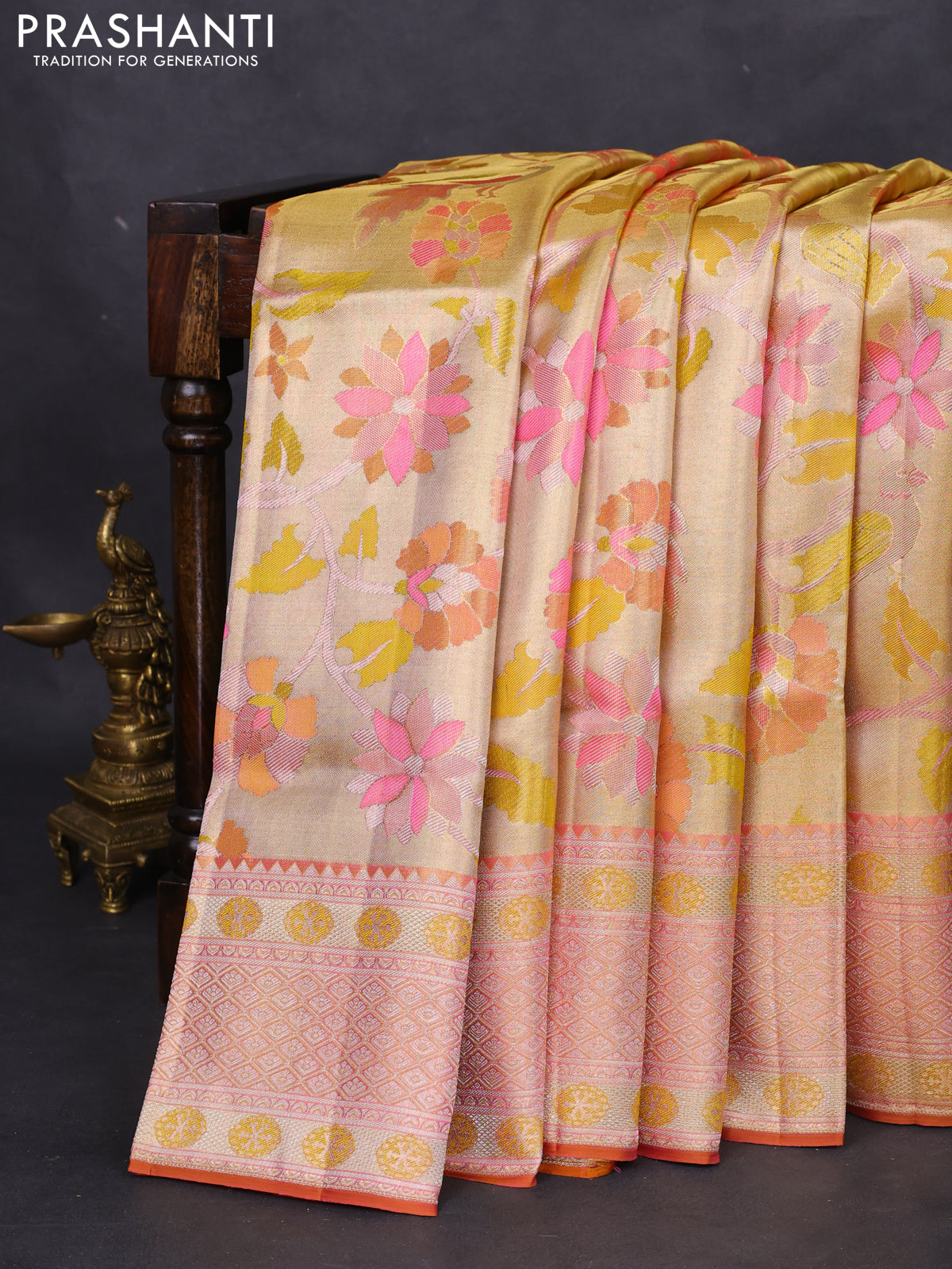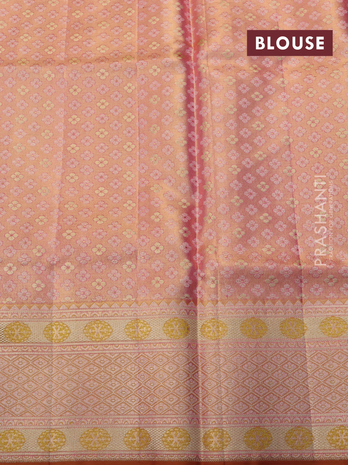 Pure kanchipuram tissue silk saree gold and rust with allover jamdhani weaves and zari woven border
