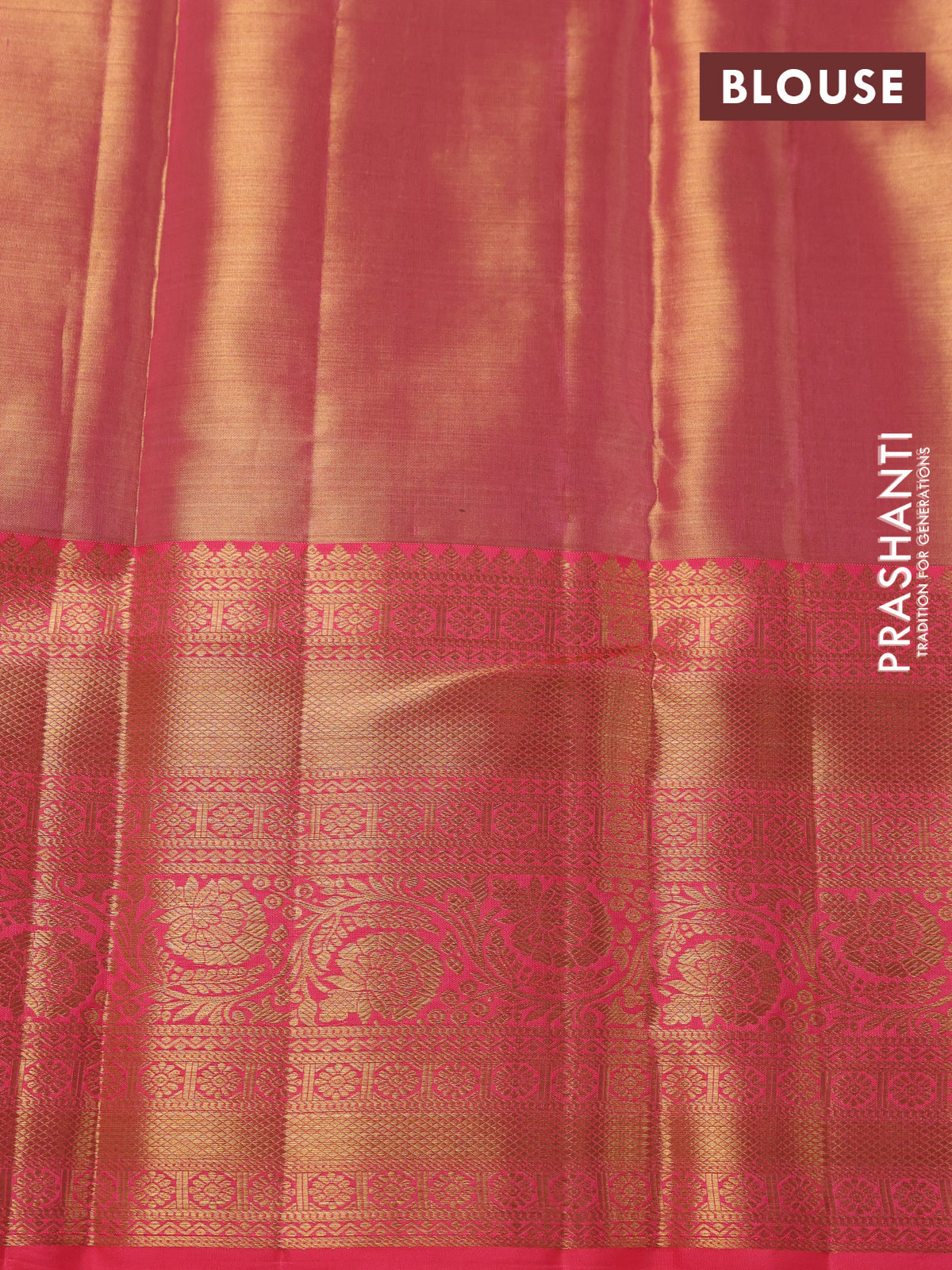 Pure kanchipuram tissue silk saree peach pink with allover zari woven brocade weaves and zari woven border