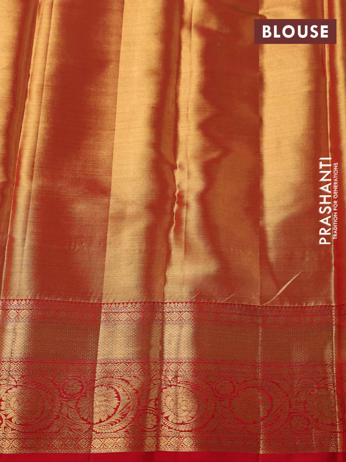 Pure kanchipuram tissue silk saree red shade with allover zari woven brocade weaves and zari woven border