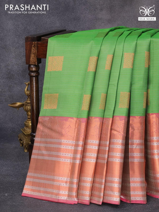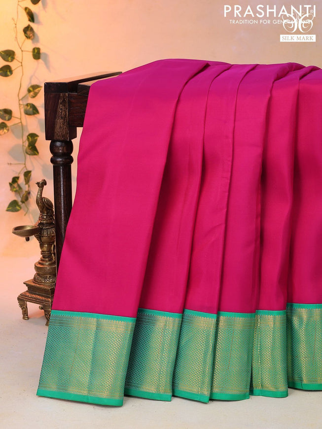 Pure kanjivaram silk saree deep purple and pink with allover zari weaves and zari woven border