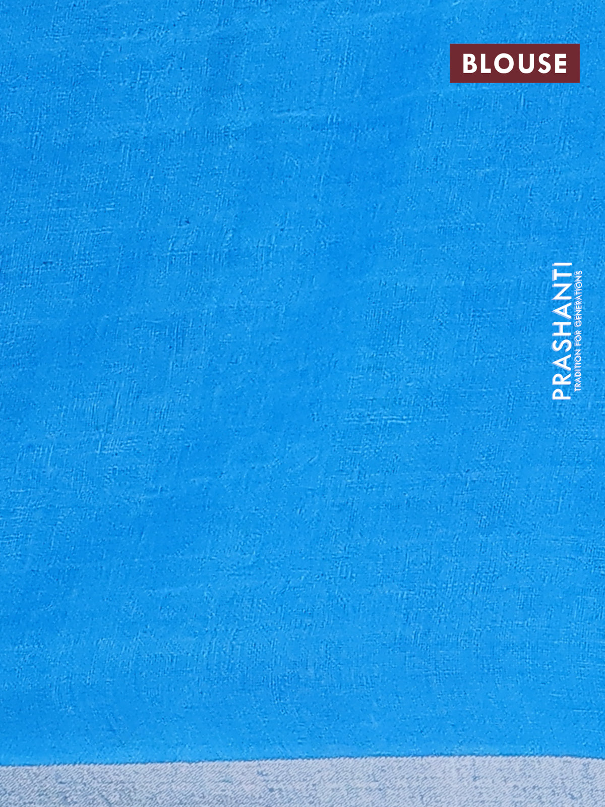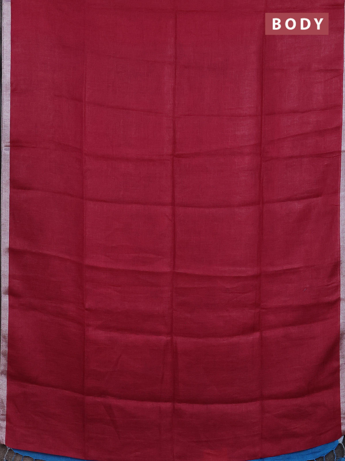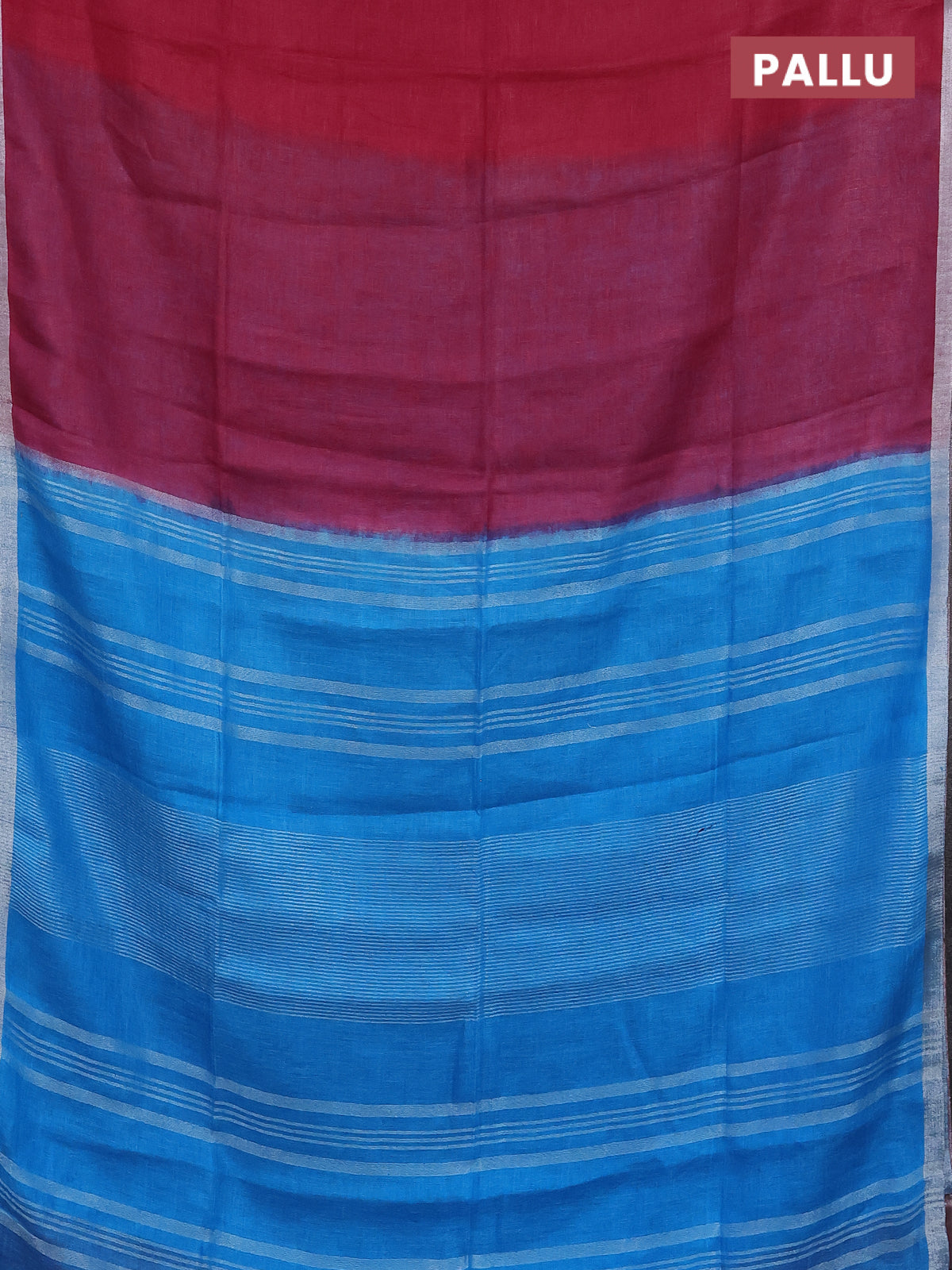 Pure linen saree dark pink and cs blue with plain body and silver zari woven border
